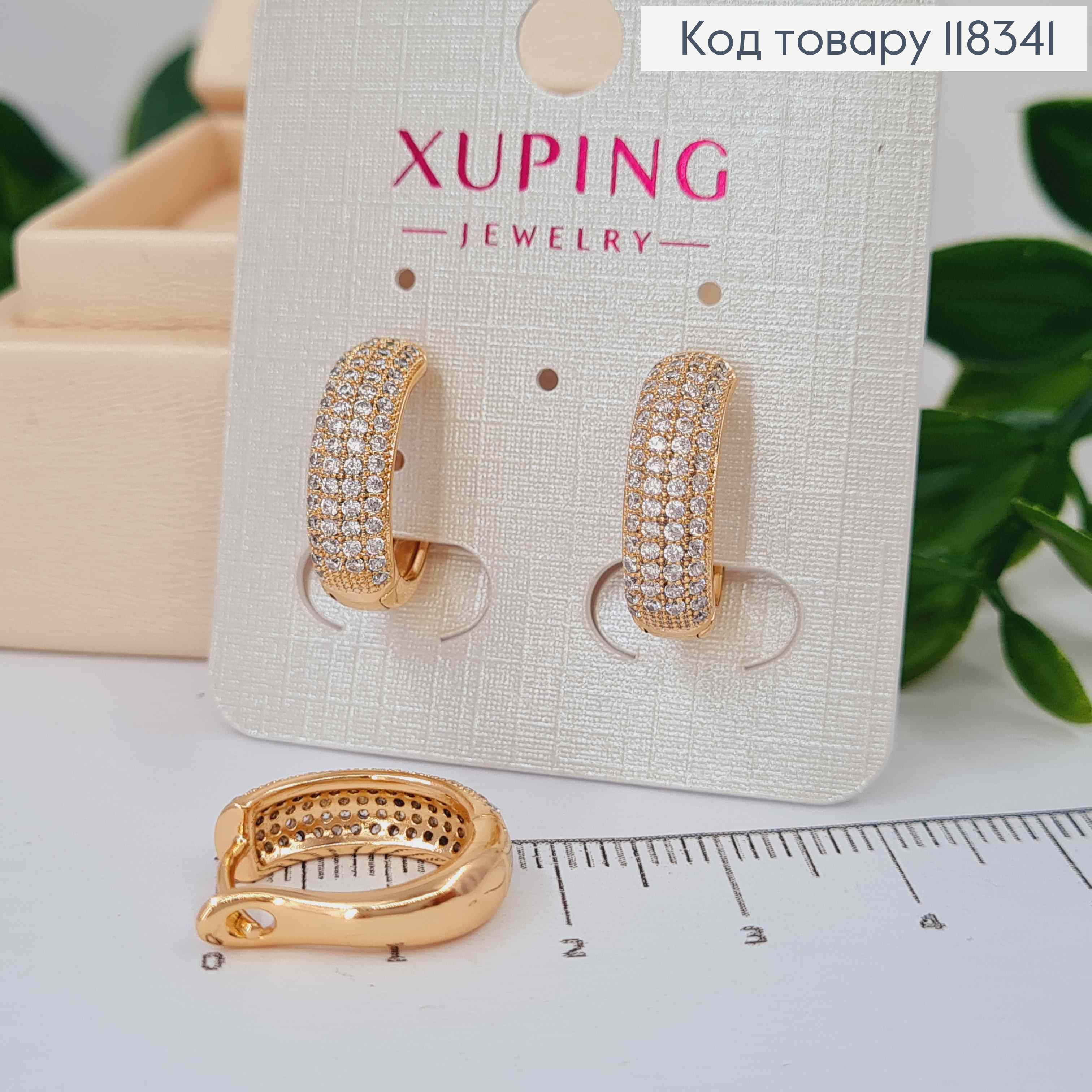 Сережки овальні прикрашені Блискучим камінням, 1,8см, англійська застібка, XUPING 18K