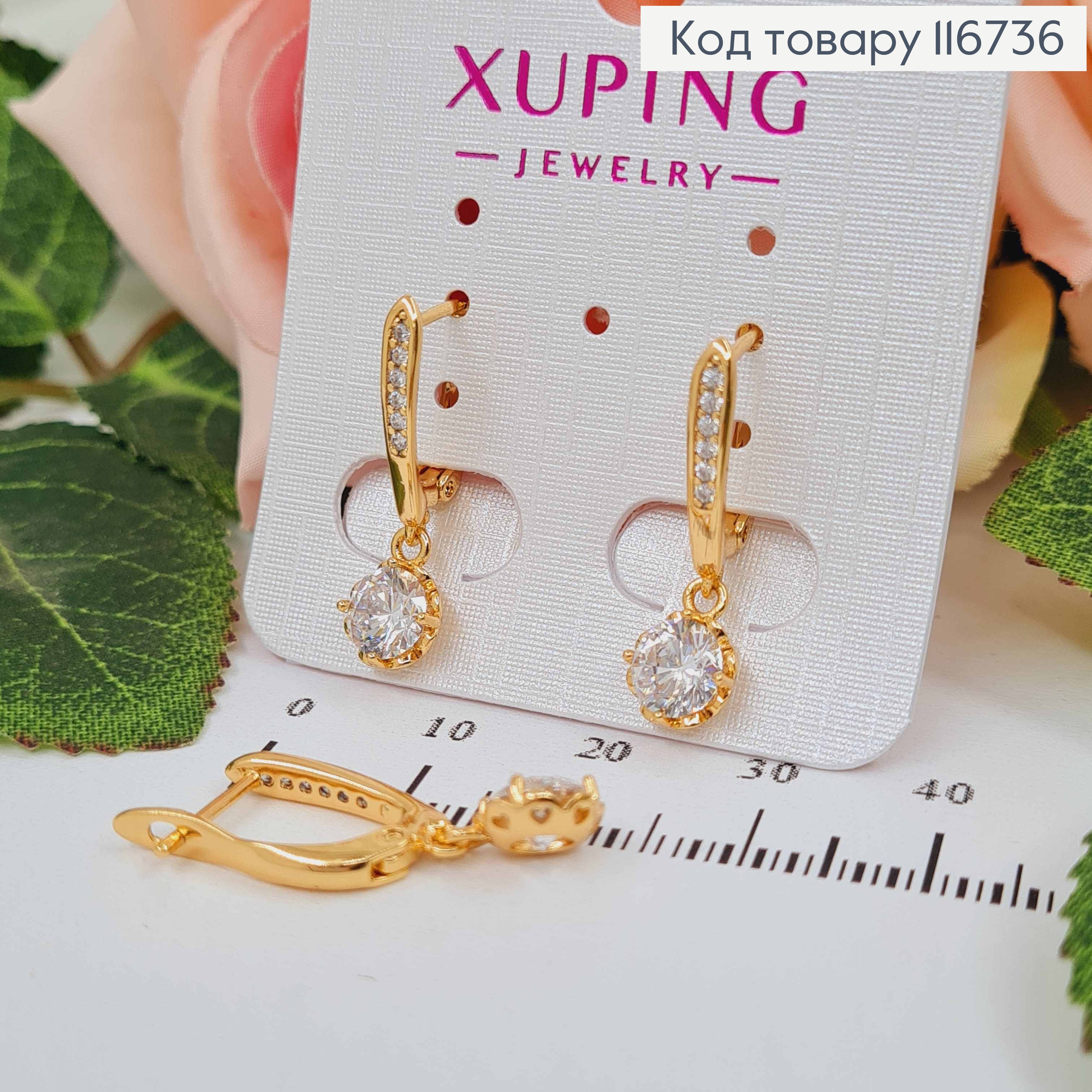 Сережки з Блискучим каменем, 1,9см, англійська застібка, Xuping 18K 110256 фото