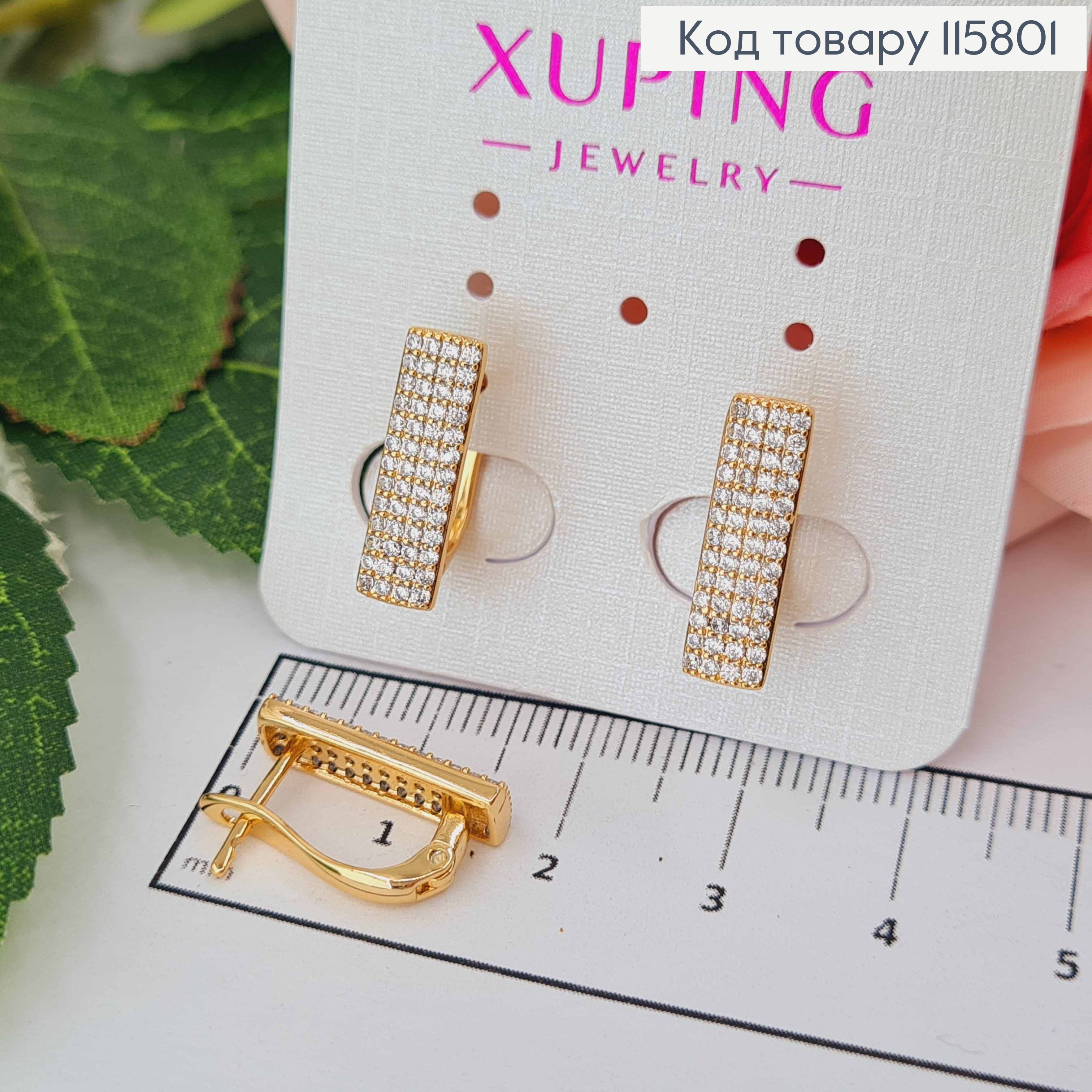Сережки з квадратним Блискучим каменем, 1,9см, англійська застібка, Xuping 18K 110257 фото