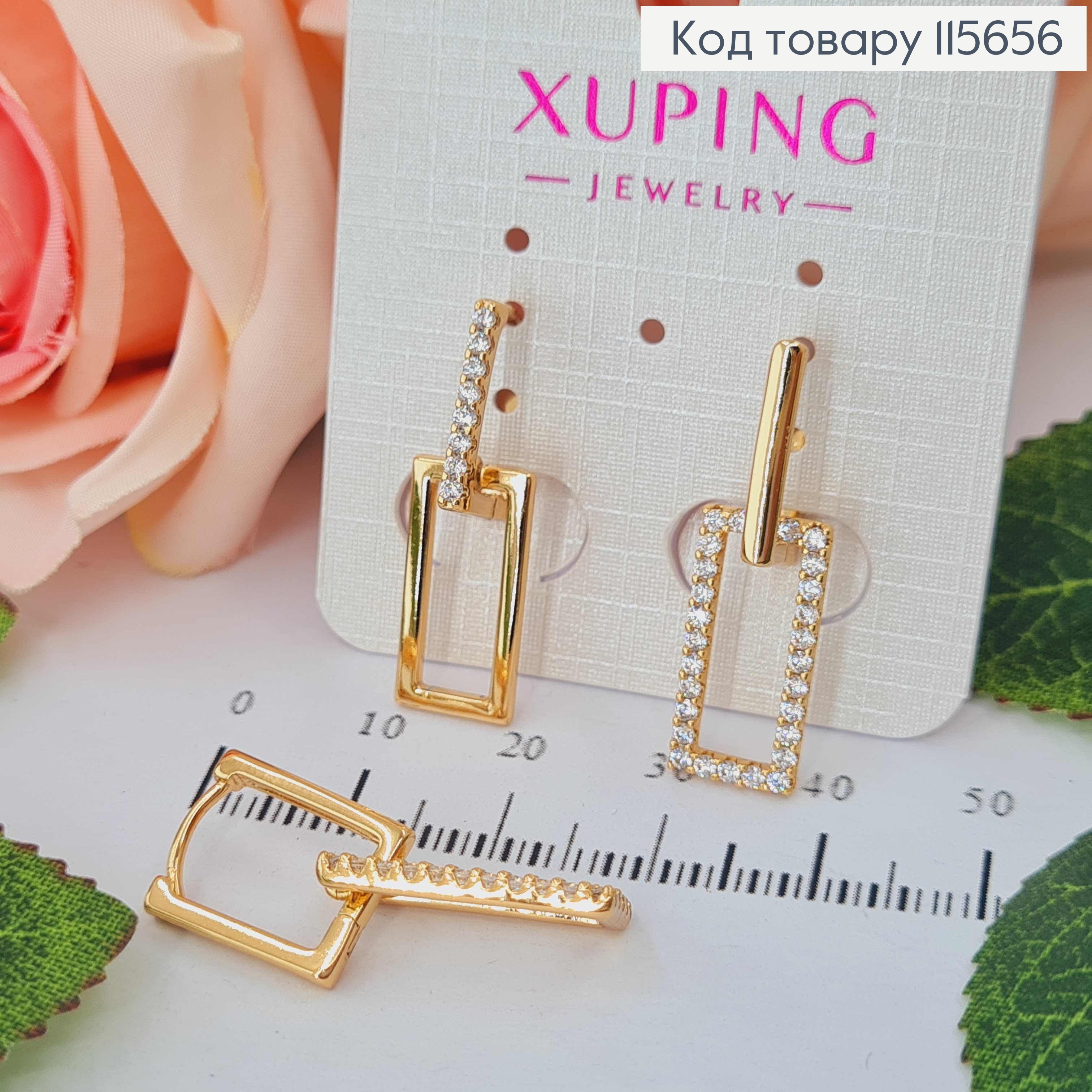 Сережки "Прямокутна пара" з камінцями, 3см, англ. заст. Xuping 18K