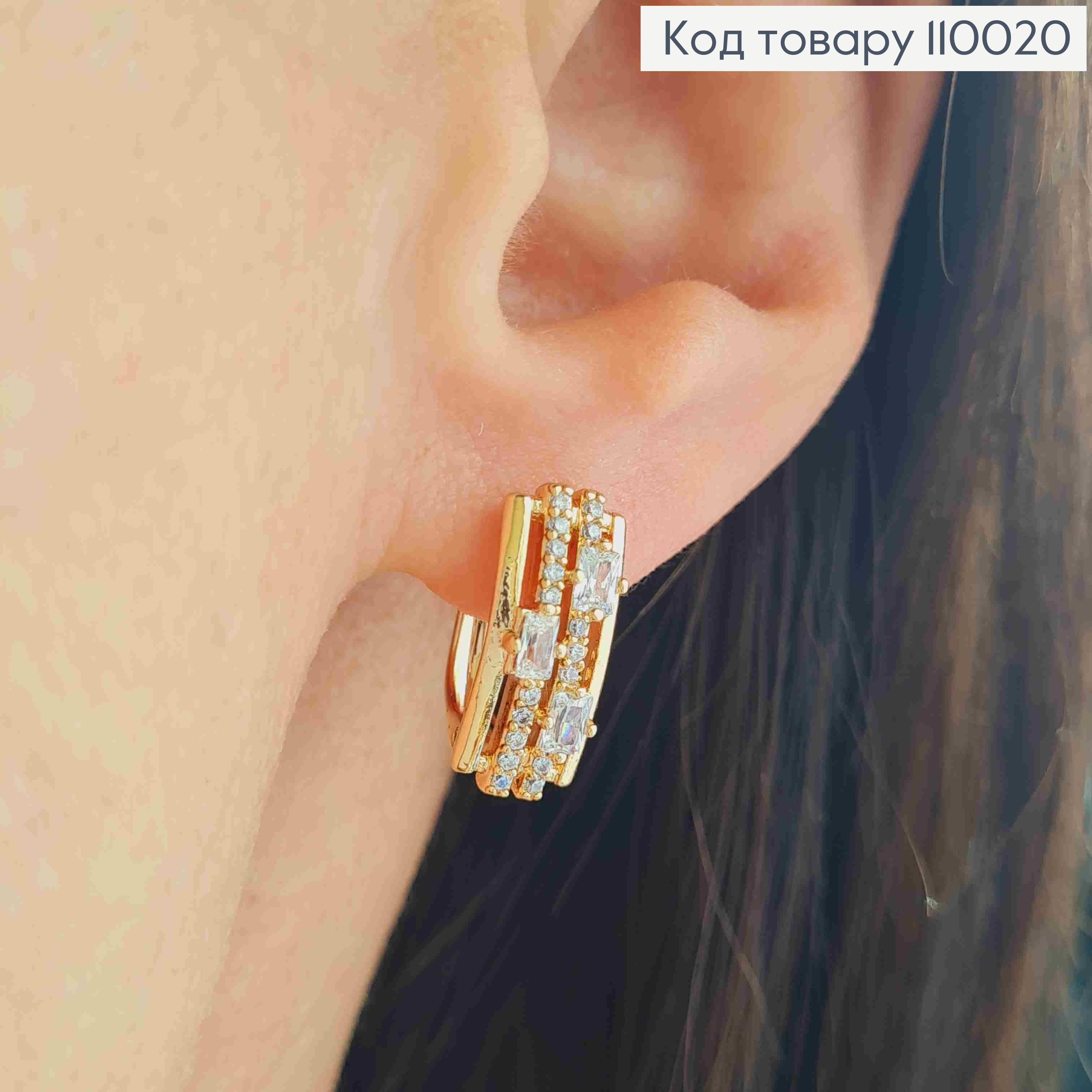 Сережки кільця "Прямокутні" прикрашені Блискучими камінцями,  довж2,4см, застібка шпилька,Xuping 18К 110199 фото
