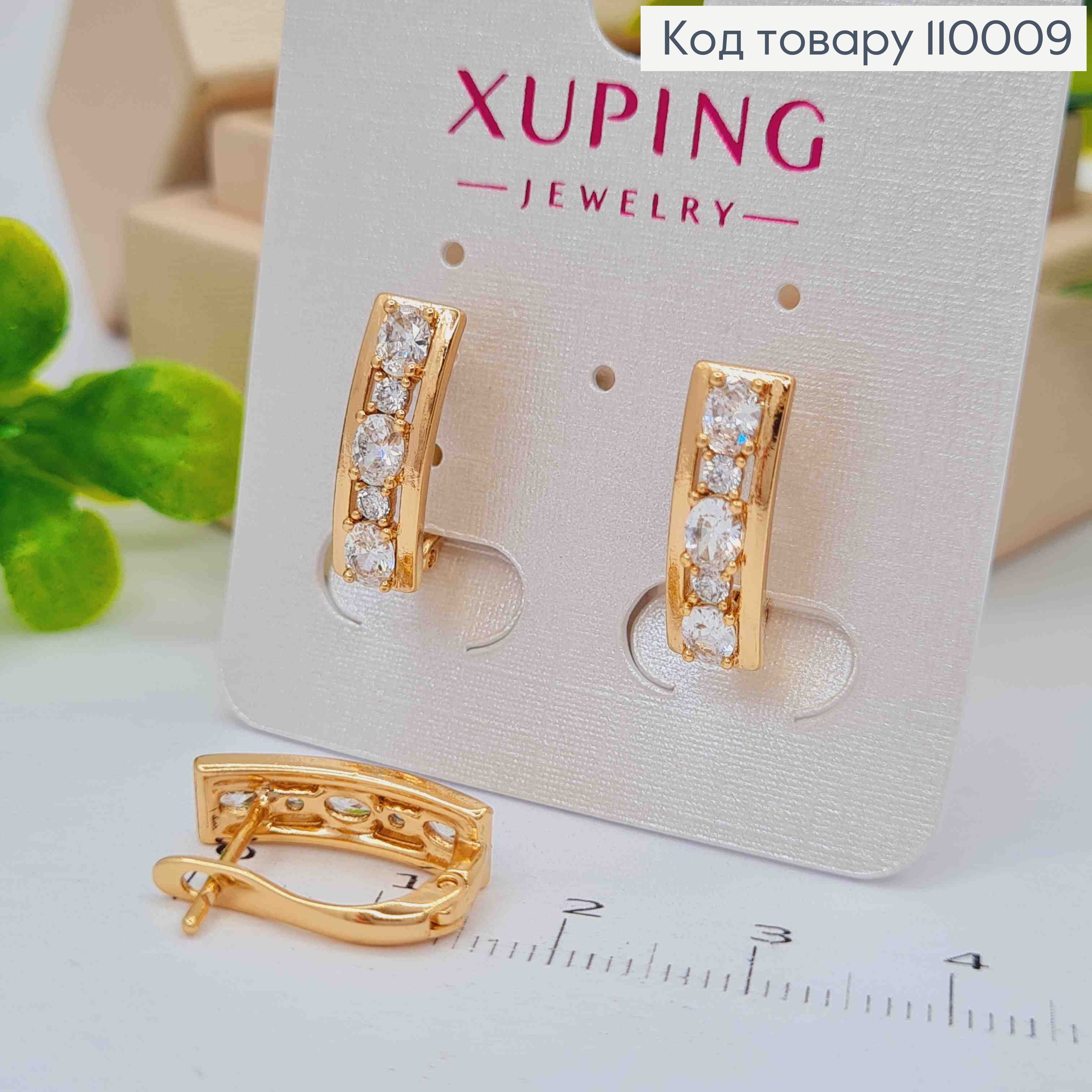 Сережки "Стріли" прикрашені Блискучими камінцями,  довжина 2,2см, англійська застібка, Xuping 18К 110204 фото