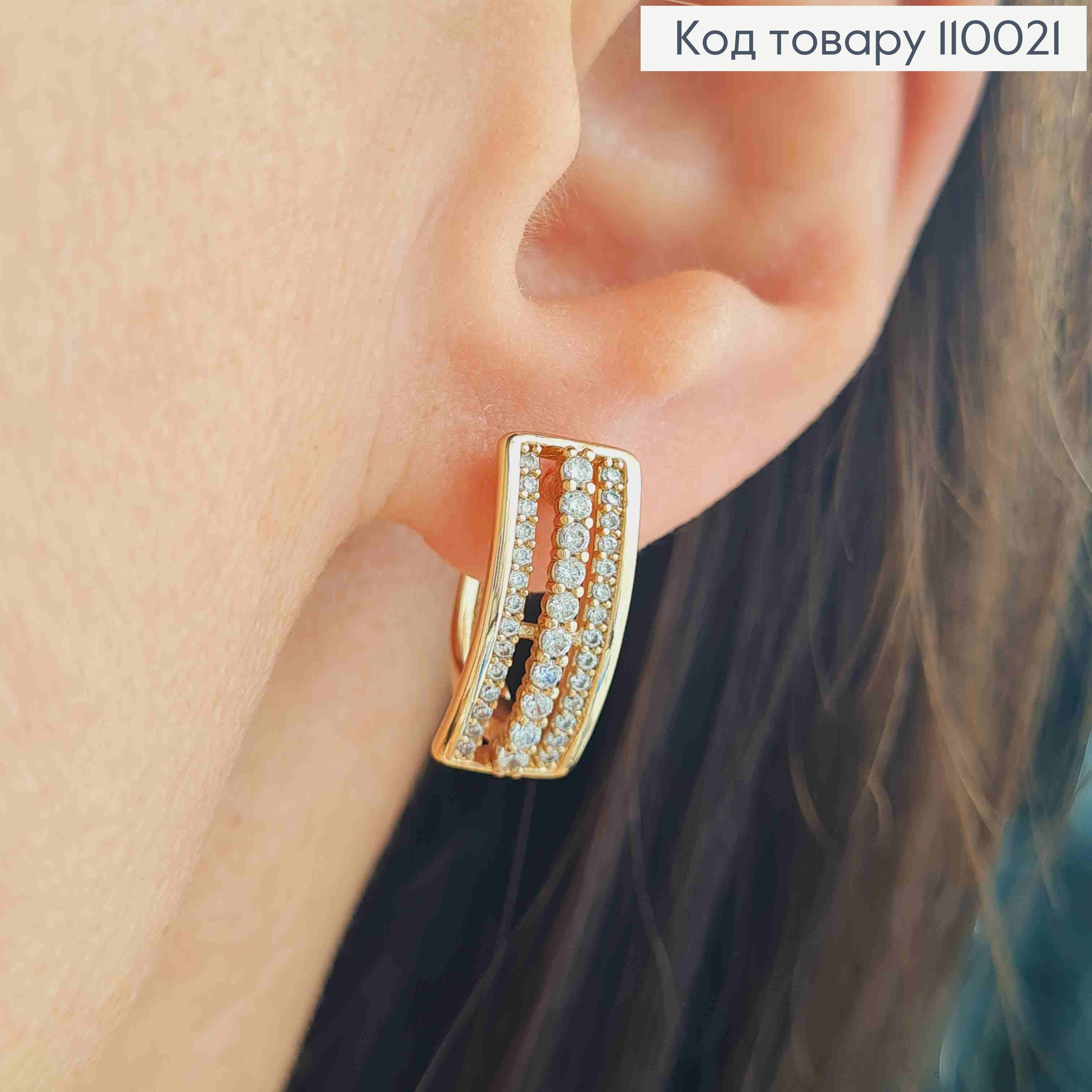 Сережки кільця "Прямокутні" прикрашені Блискучими камінцями,  довж2,4см, застібка шпилька,Xuping 18К 110199 фото