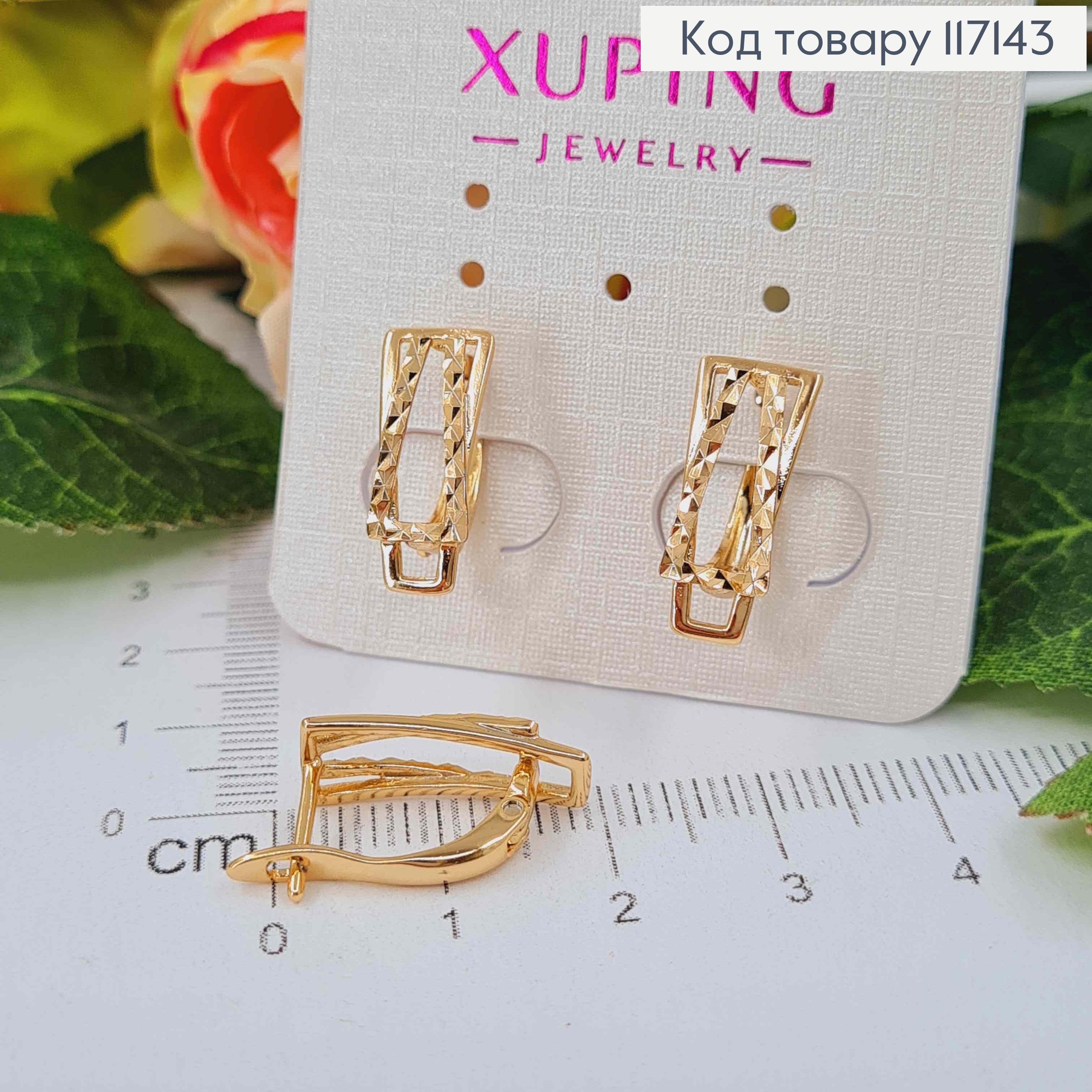 Сережки "ПРЯЖКА" з різбленням 1,7*0,7см (англійська застібка), XUPING 18K