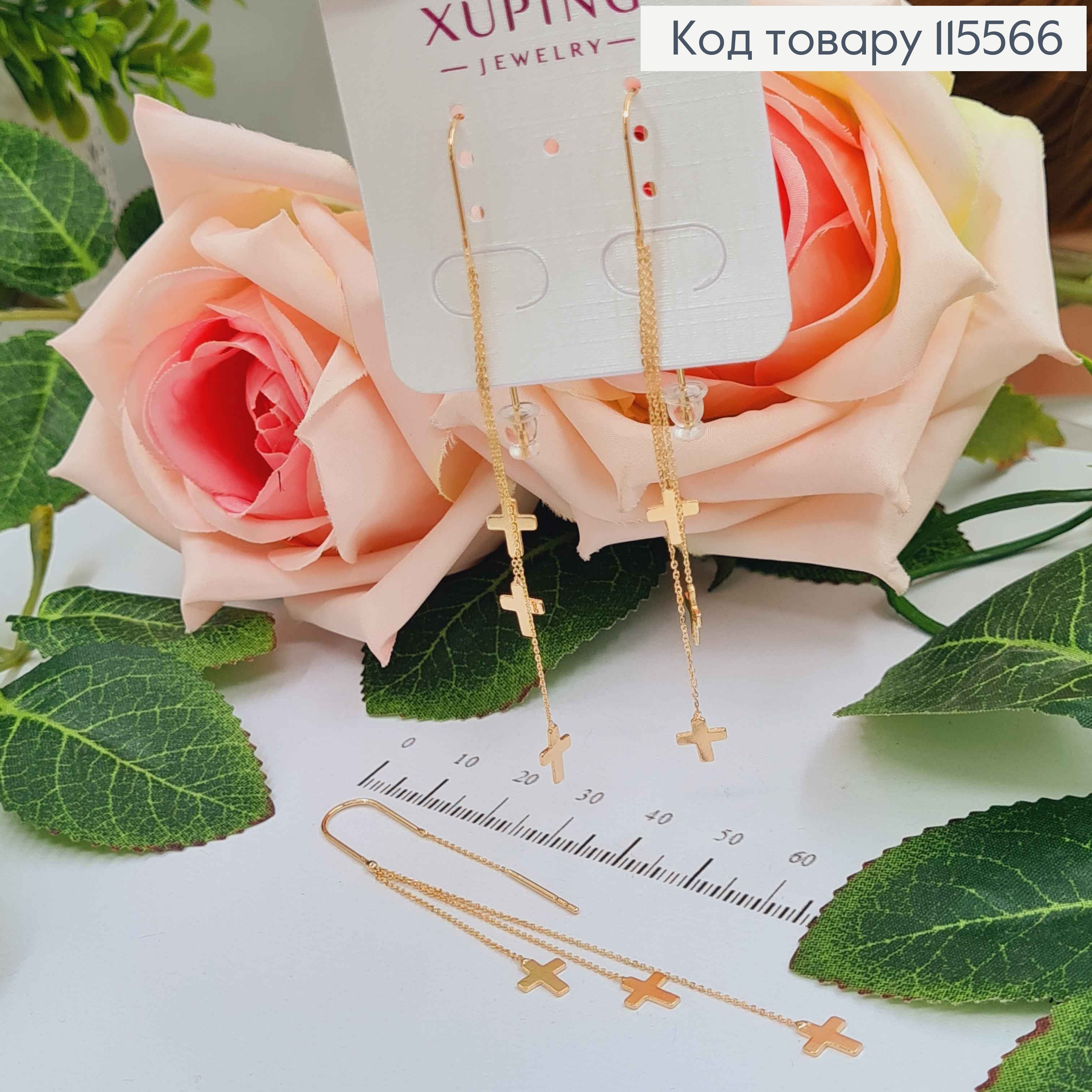 Сережки протяжки, ниточки з хрестиками 8см Xuping 18K