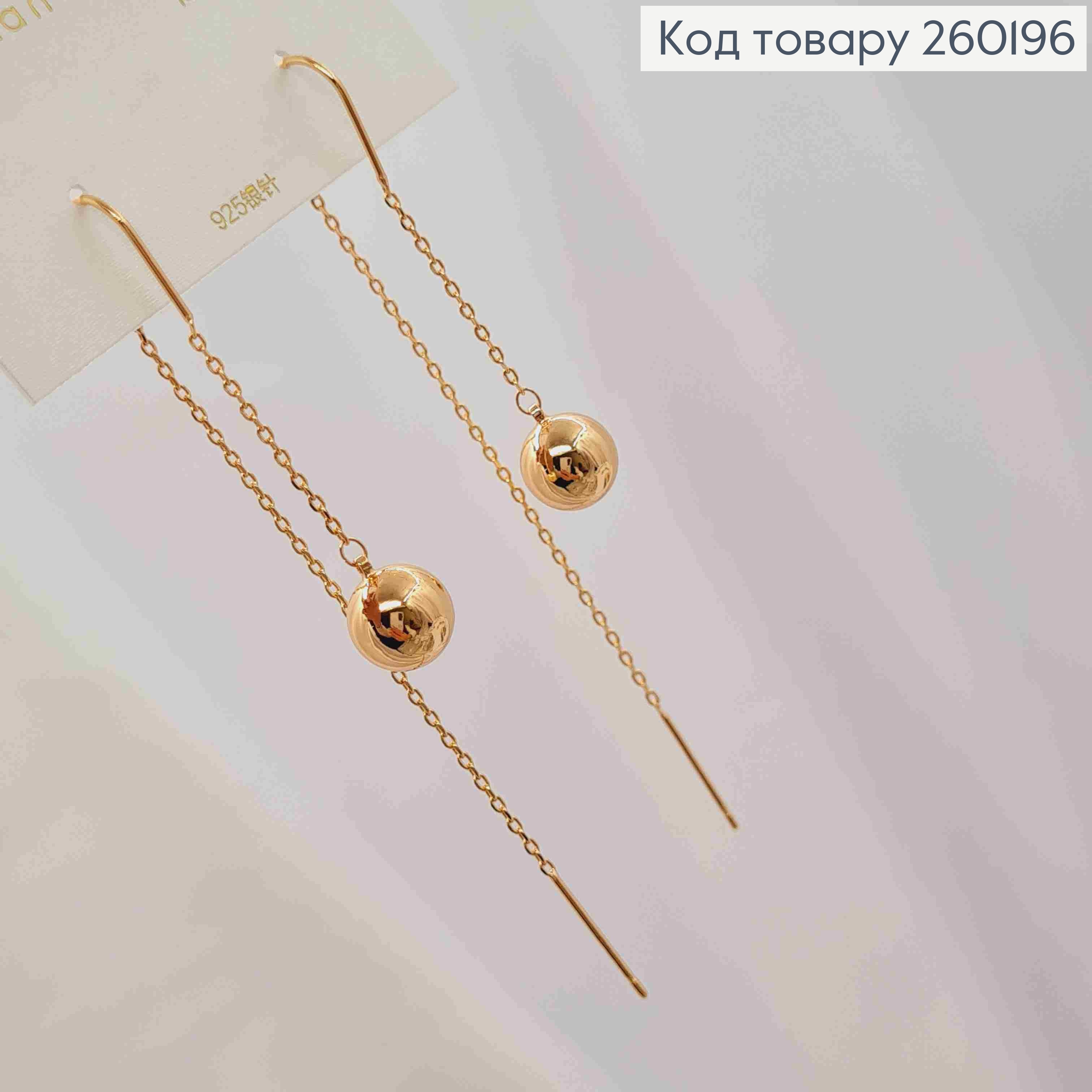 Сережки протяжки золотого кольору з підвісною Кулькою (8мм),довж 4см, сталь XianGuang