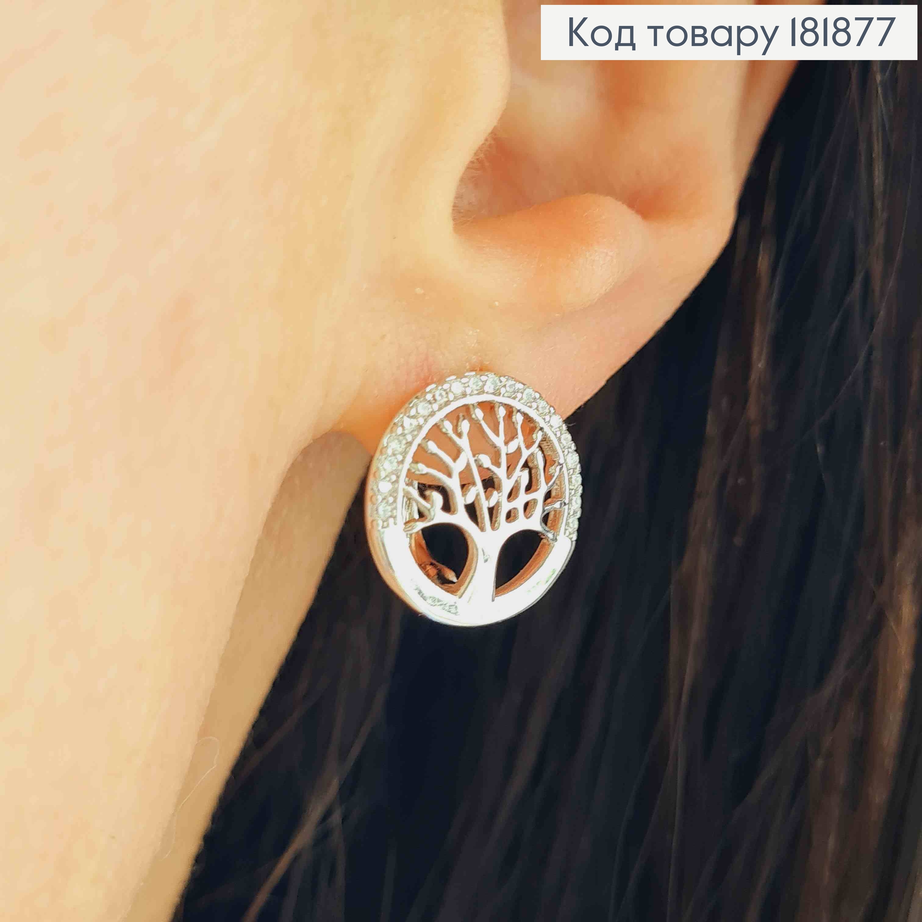Сережки родовані "Дерево Життя" з Блискучими камінцями, 1,4см, англійська застібка, XUPING