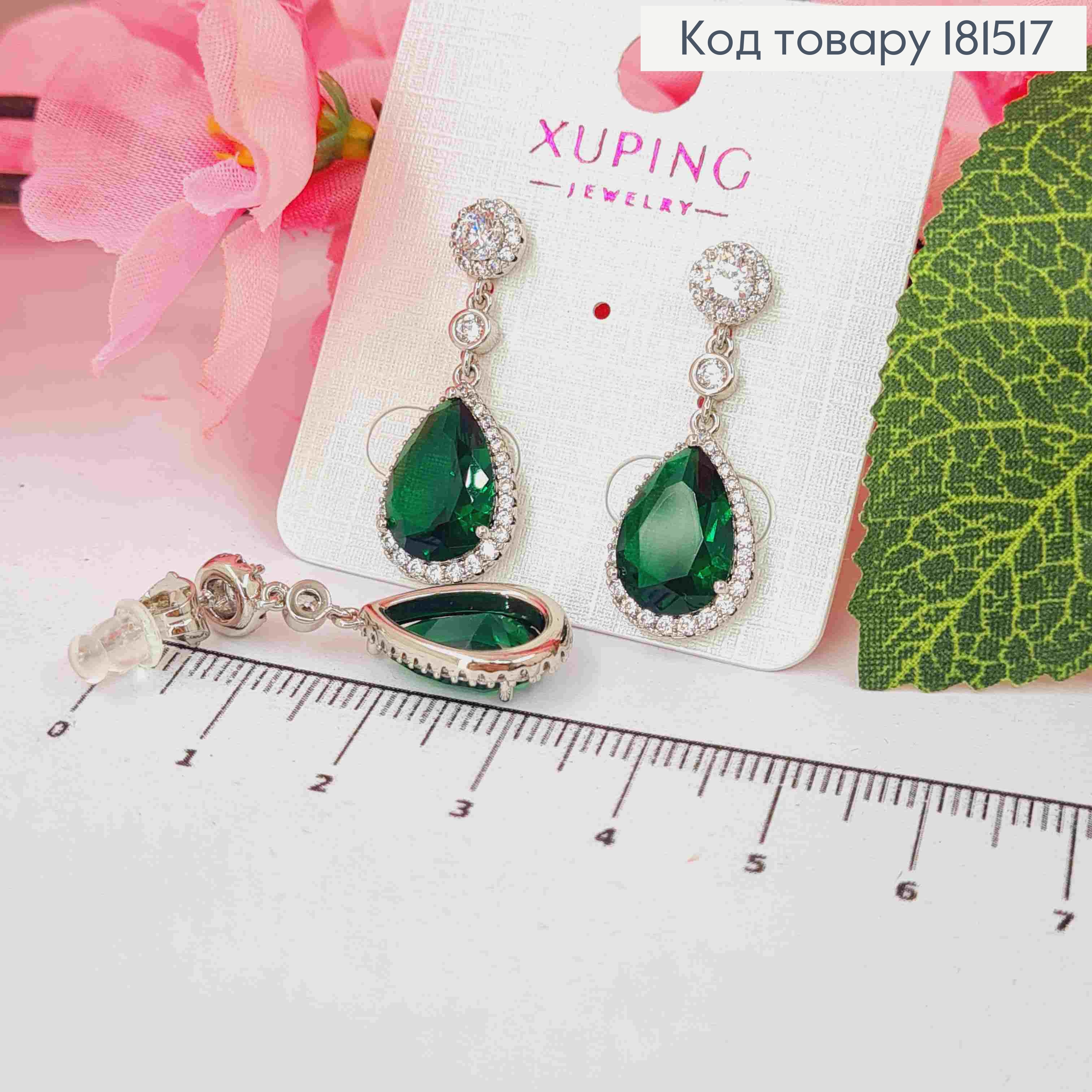 Сережки родовані гвіздки, з підвісним Зеленим камнем, довжина 3см, Xuping