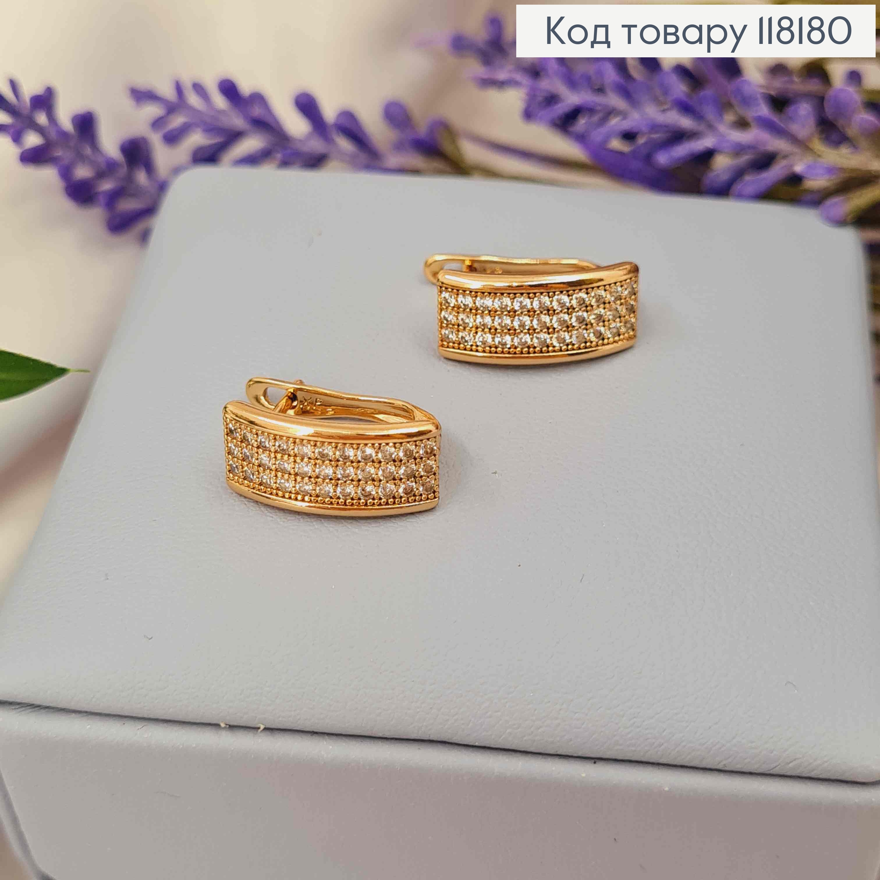 Сережки "Сяйво" прикрашені Блискучими камінцями в три ряди, 1,5см, англійська застібка, XUPING 18K
