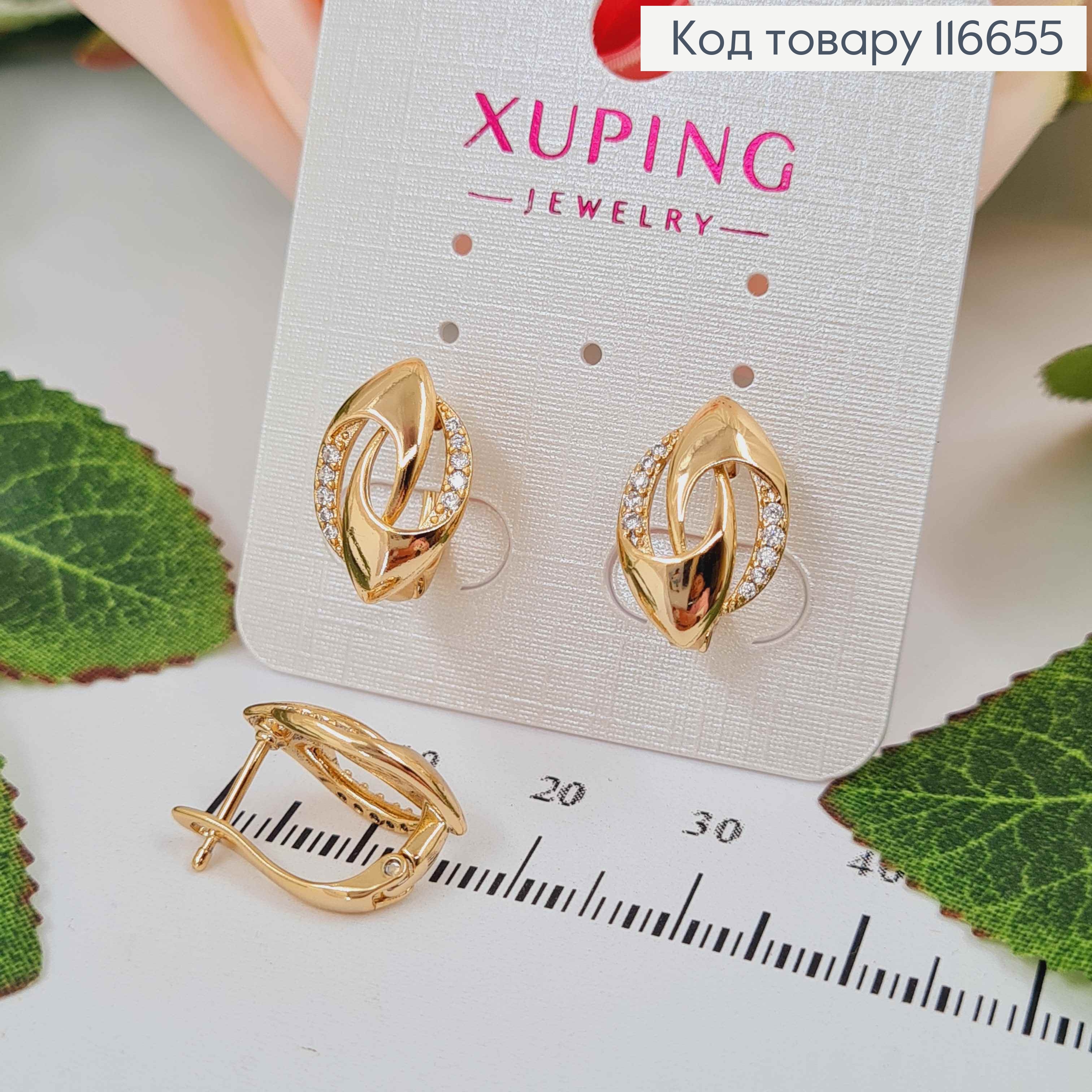 Сережки з Вишуканим Блискучим каменем, 1,6см, англійська застібка, Xuping 18К 110253 фото