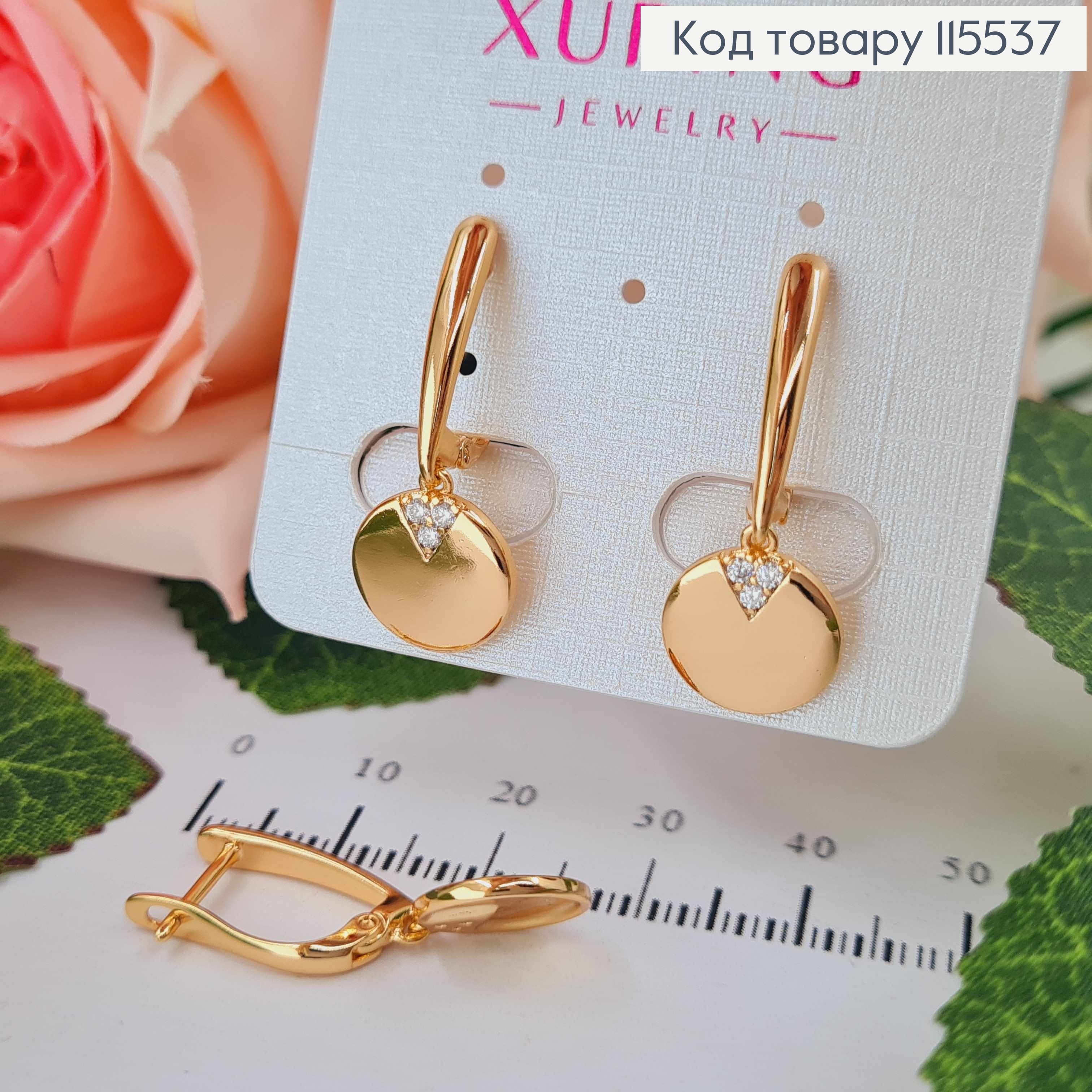 Сережки стріли 1,5см, з підвіскою плоскою монеткою з камінцями 1см, англ. заст. Xuping 18K