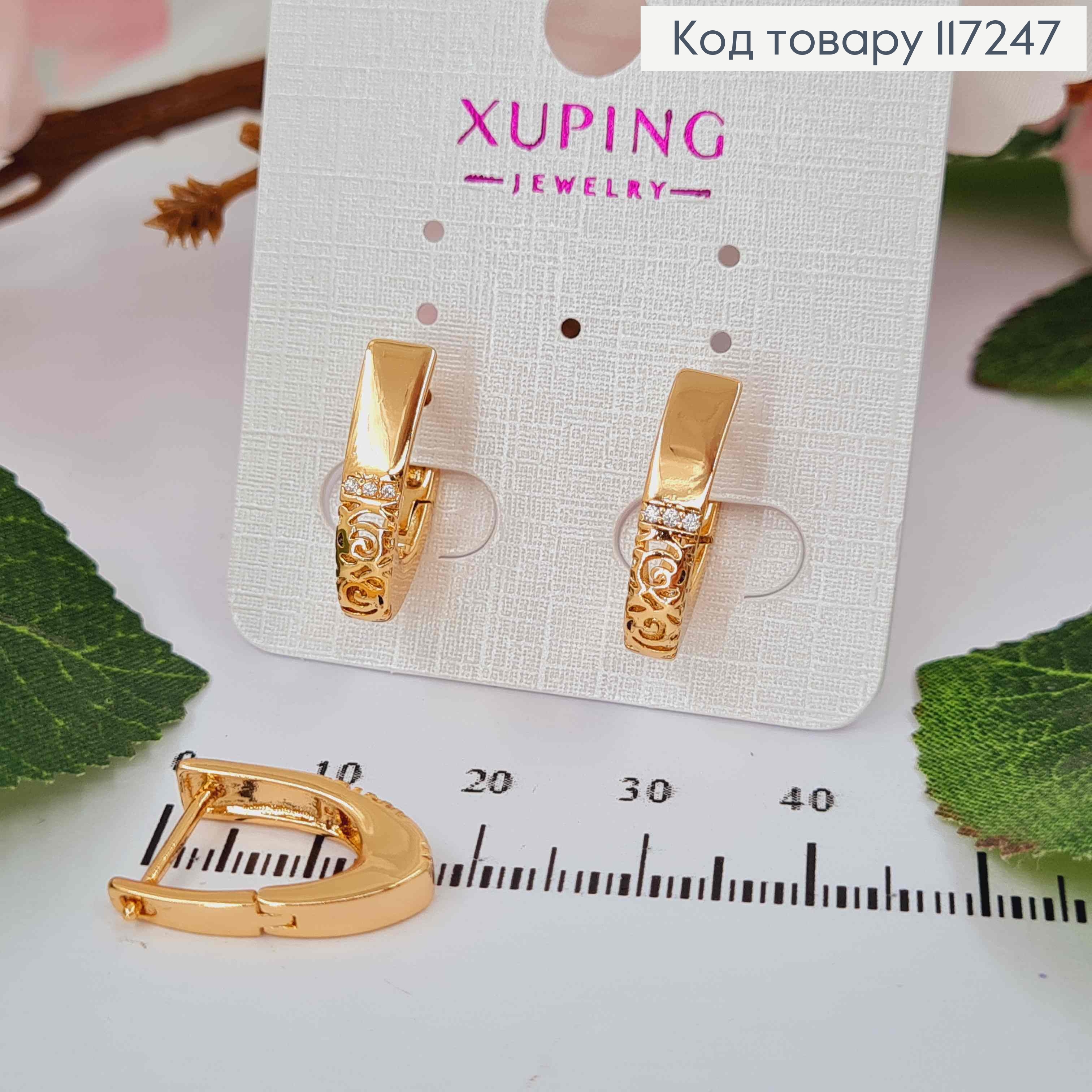 Сережки СТРІЛИ з візерунком і маленькими камінцями, висота 2см, англійська застібка XUPING 18K
