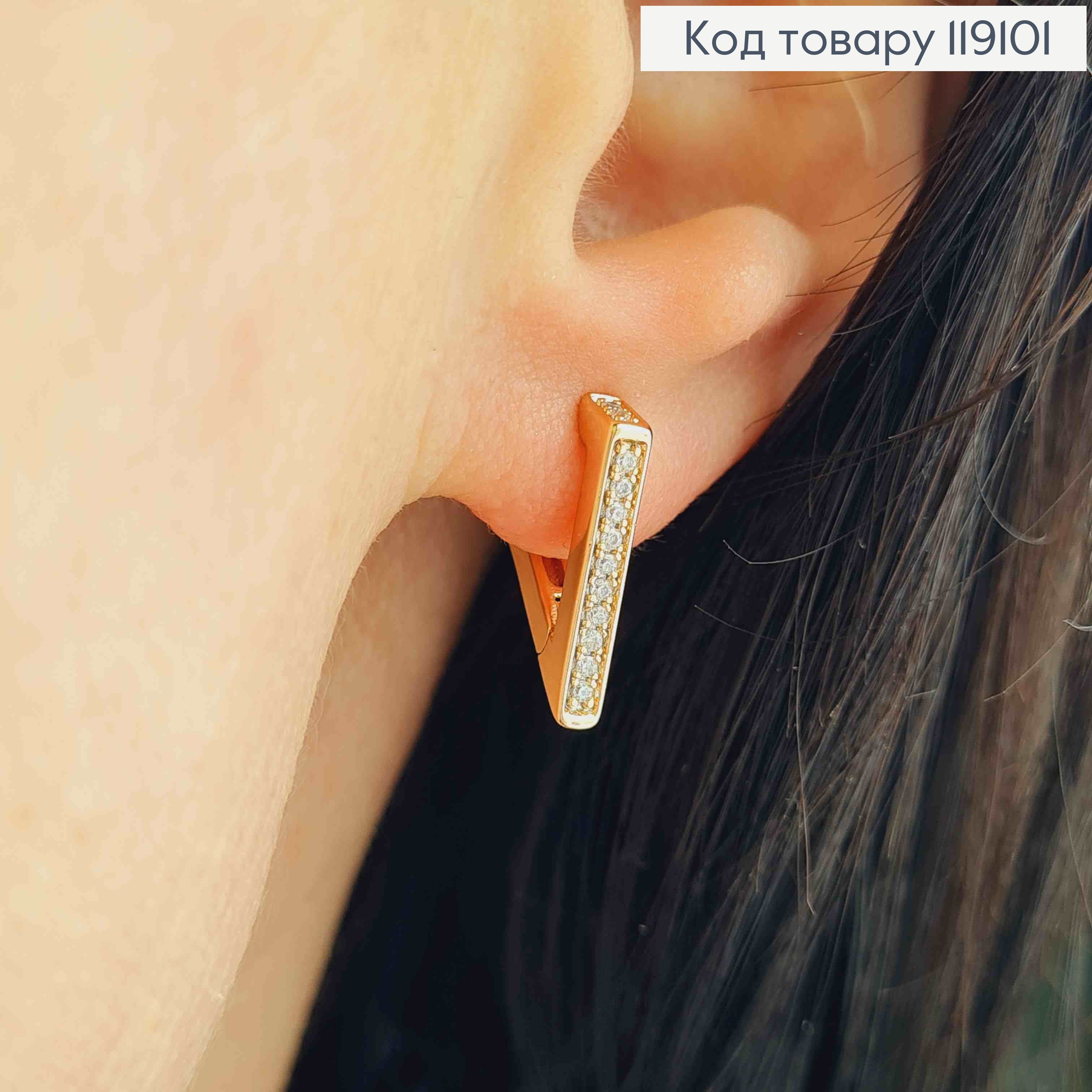 Сережки кільця "Прямокутні" прикрашені Блискучими камінцями,  довж2,4см, застібка шпилька,Xuping 18К 110199 фото