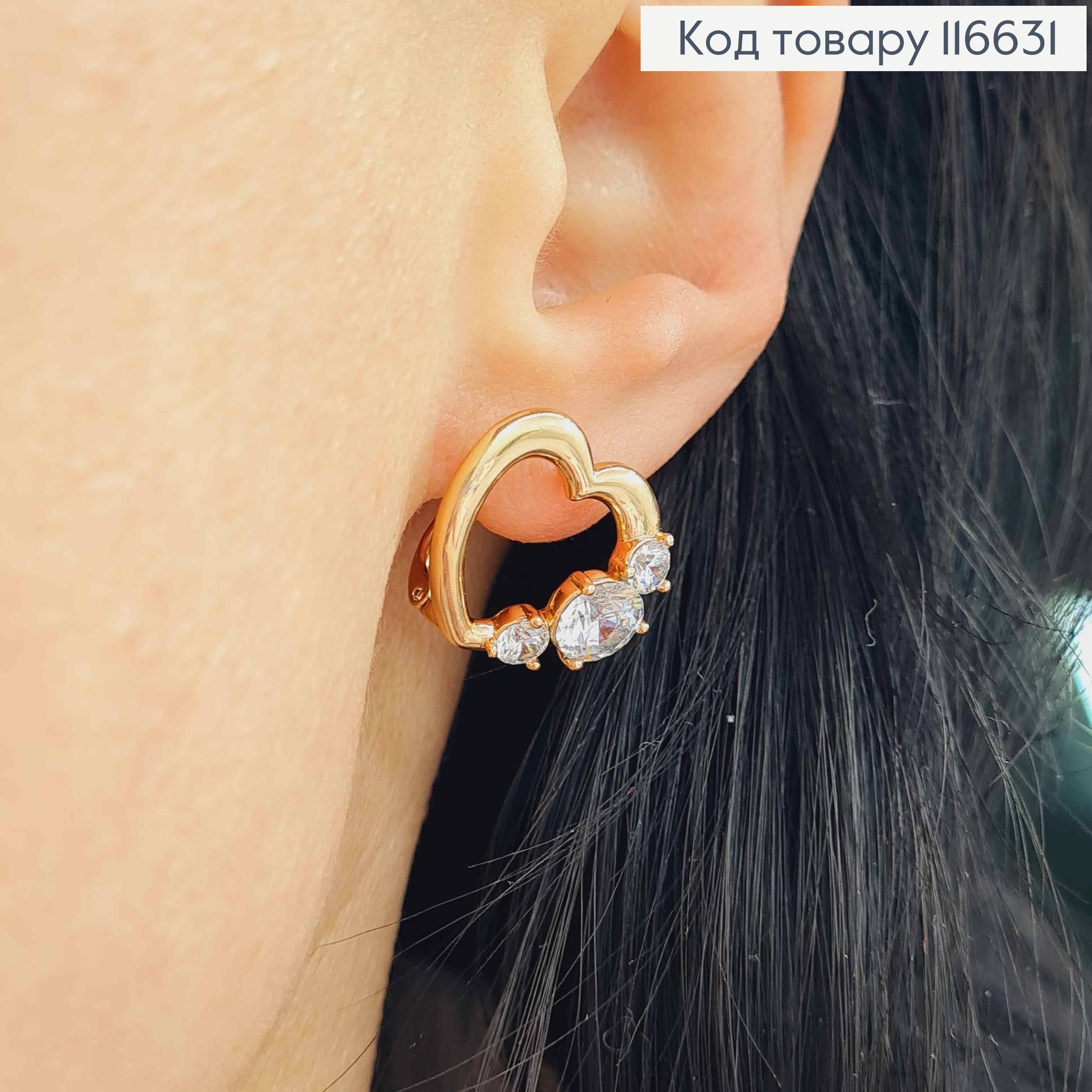 Сережки великі Сердечка, з камінцями різної форми, 1,7см, англ. заст. Xuping 18K
