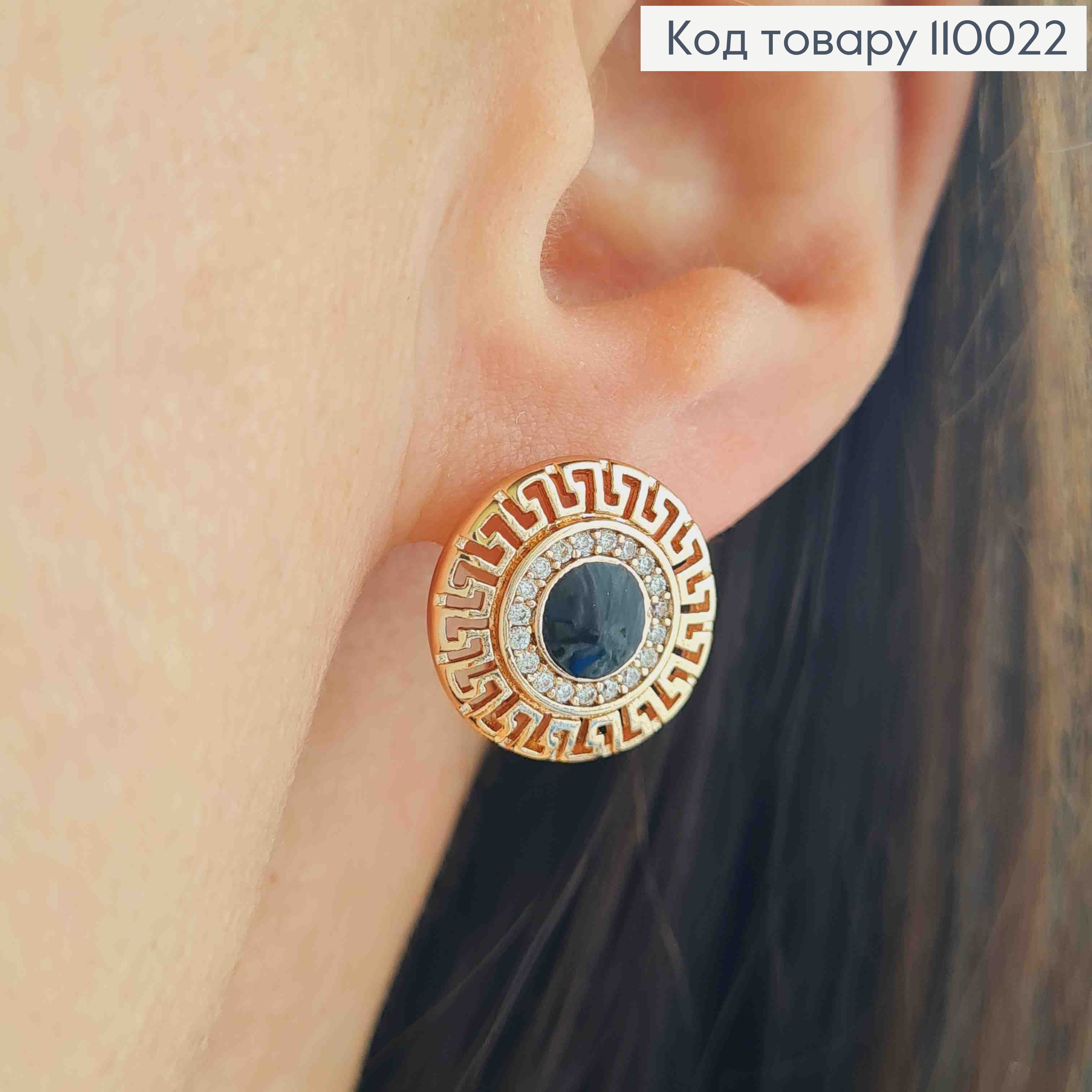 Сережки ВЕРСАЧЕ з Блискучими камінцями та Чорною емаллю, 1,5см, англійська застібка, Xuping 18К