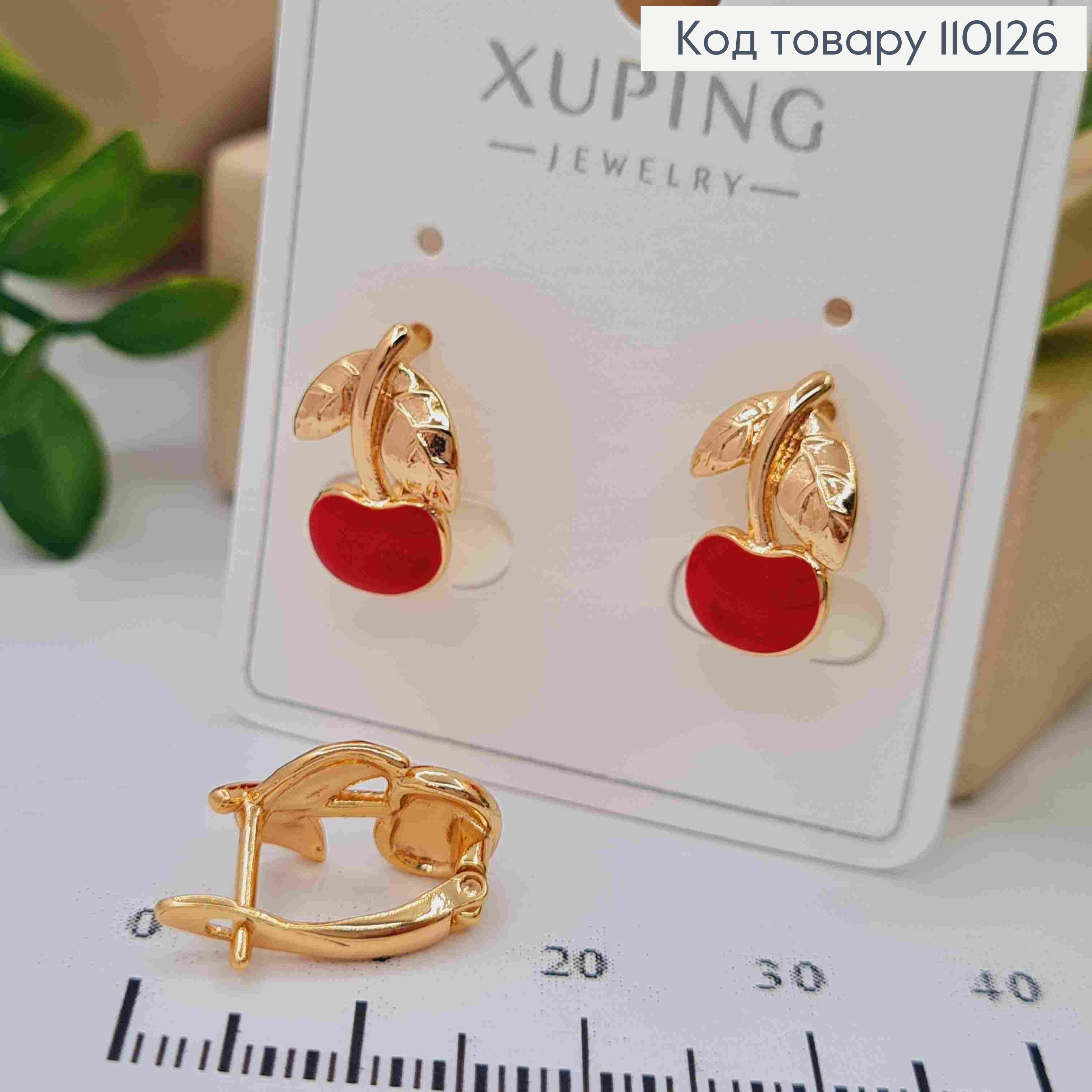 Сережки "Вишеньки Черешеньки" з Червоною емаллю, 1,4см, англ. застібка, XUPING 18К