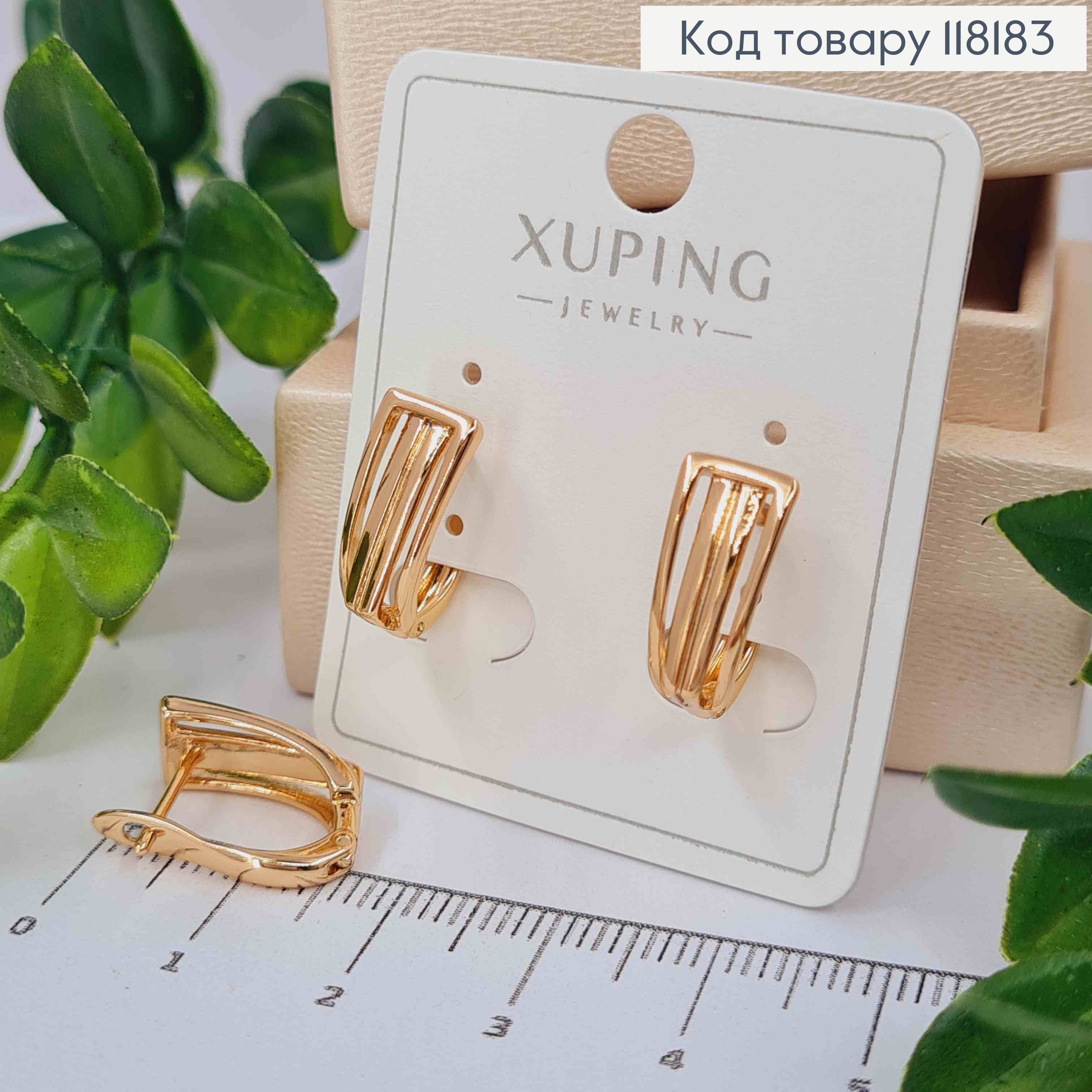 Сережки прямокутні Фактурні,  довжина 1,7см, англійська застібка, Xuping 18К 110203 фото