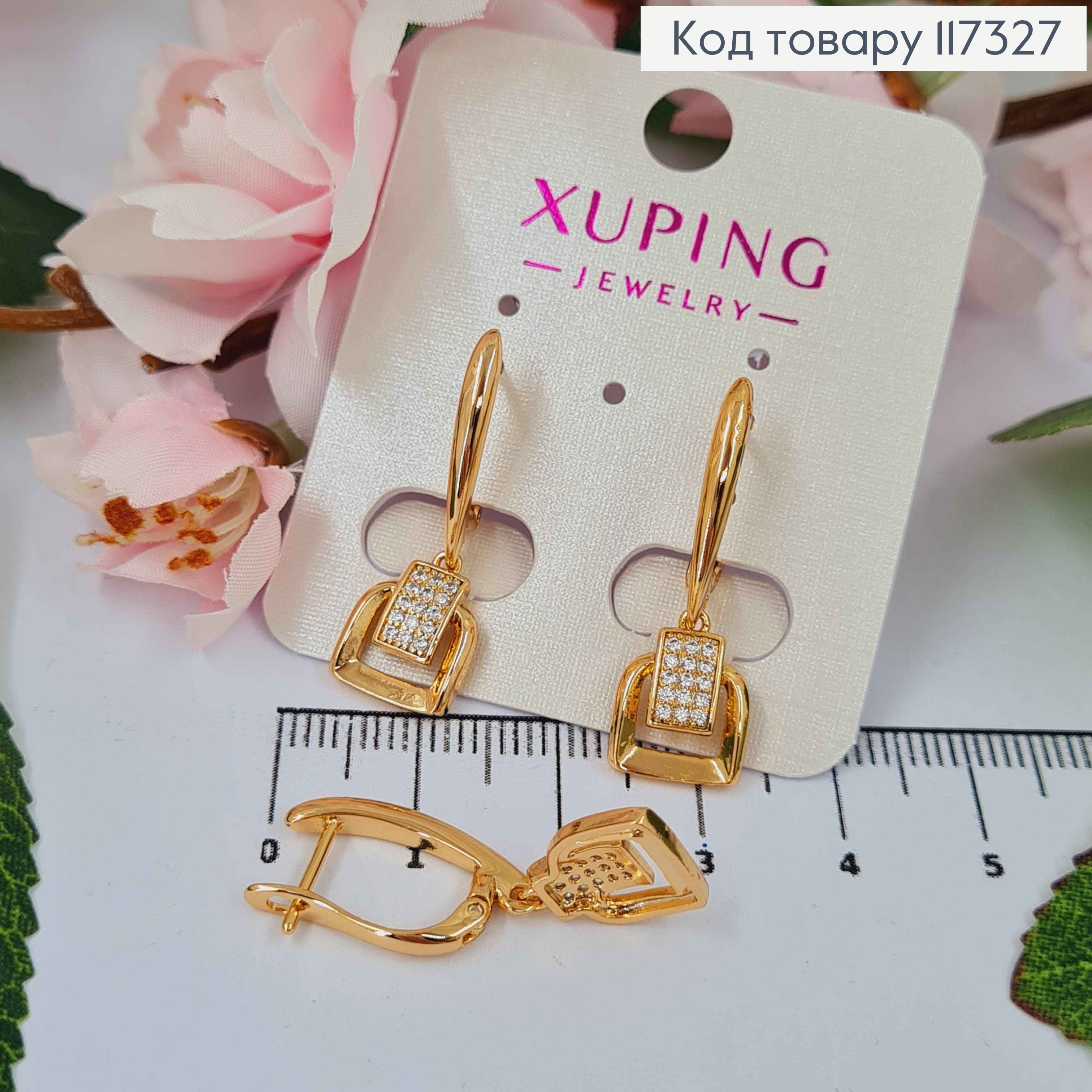 Сережки з квадратною підвіскою в Камінцях, довжина 3см, англ застіба, Xuping 18К