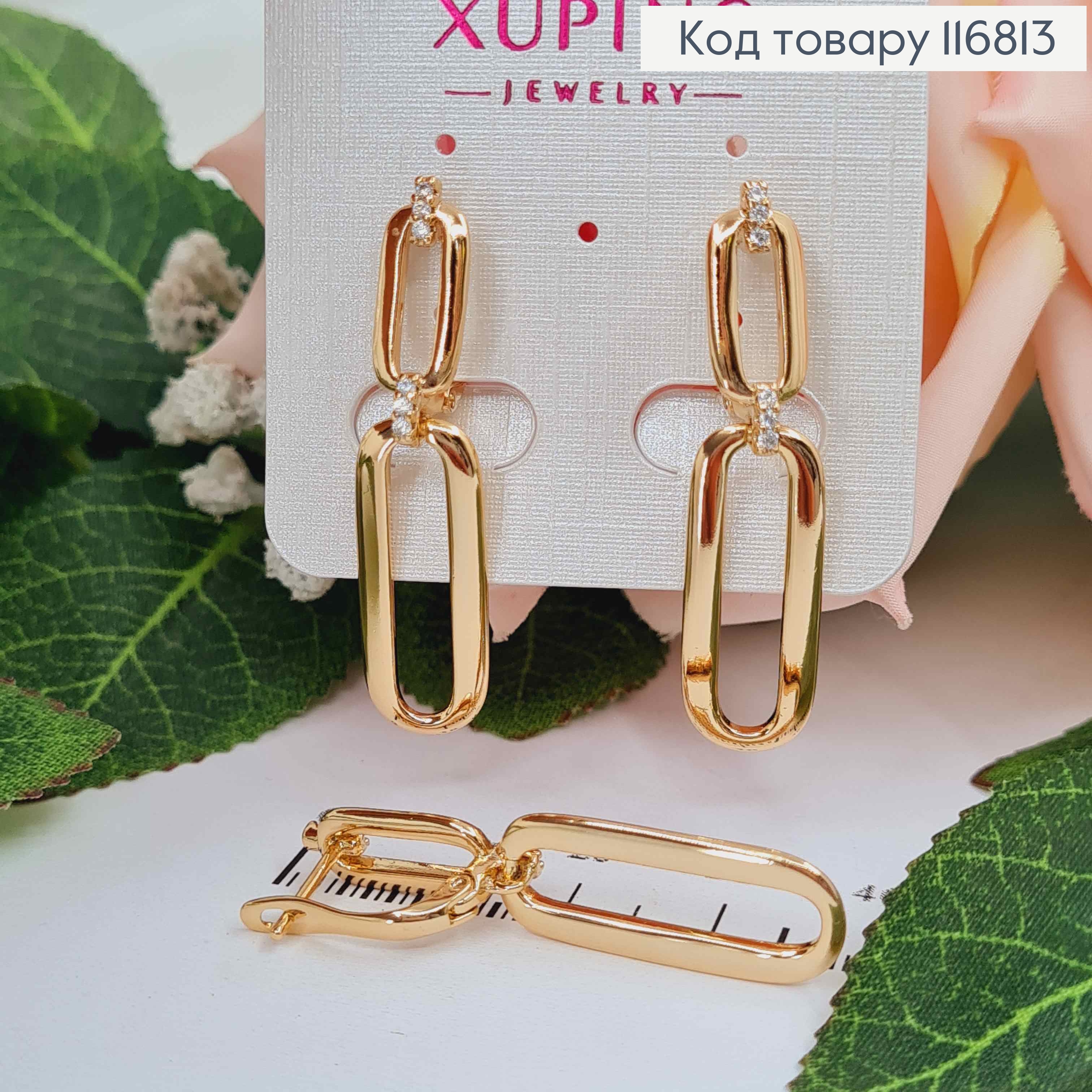 Сережки з овальними підвісками, з перетинками в камінцях, 4см, англ. заст., Xuping 18K