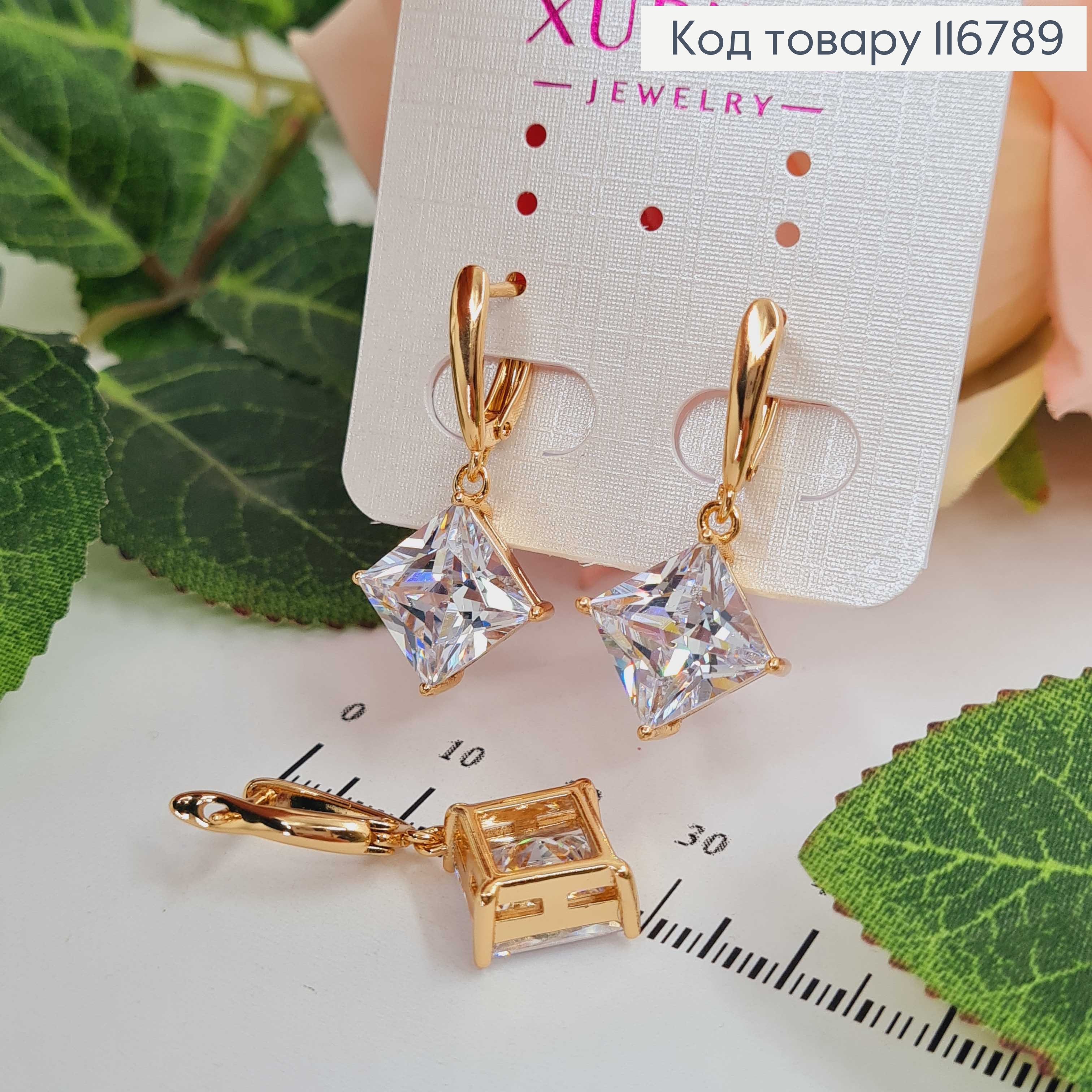 Сережки з квадратним Блискучим каменем, 1,9см, англійська застібка, Xuping 18K 110257 фото