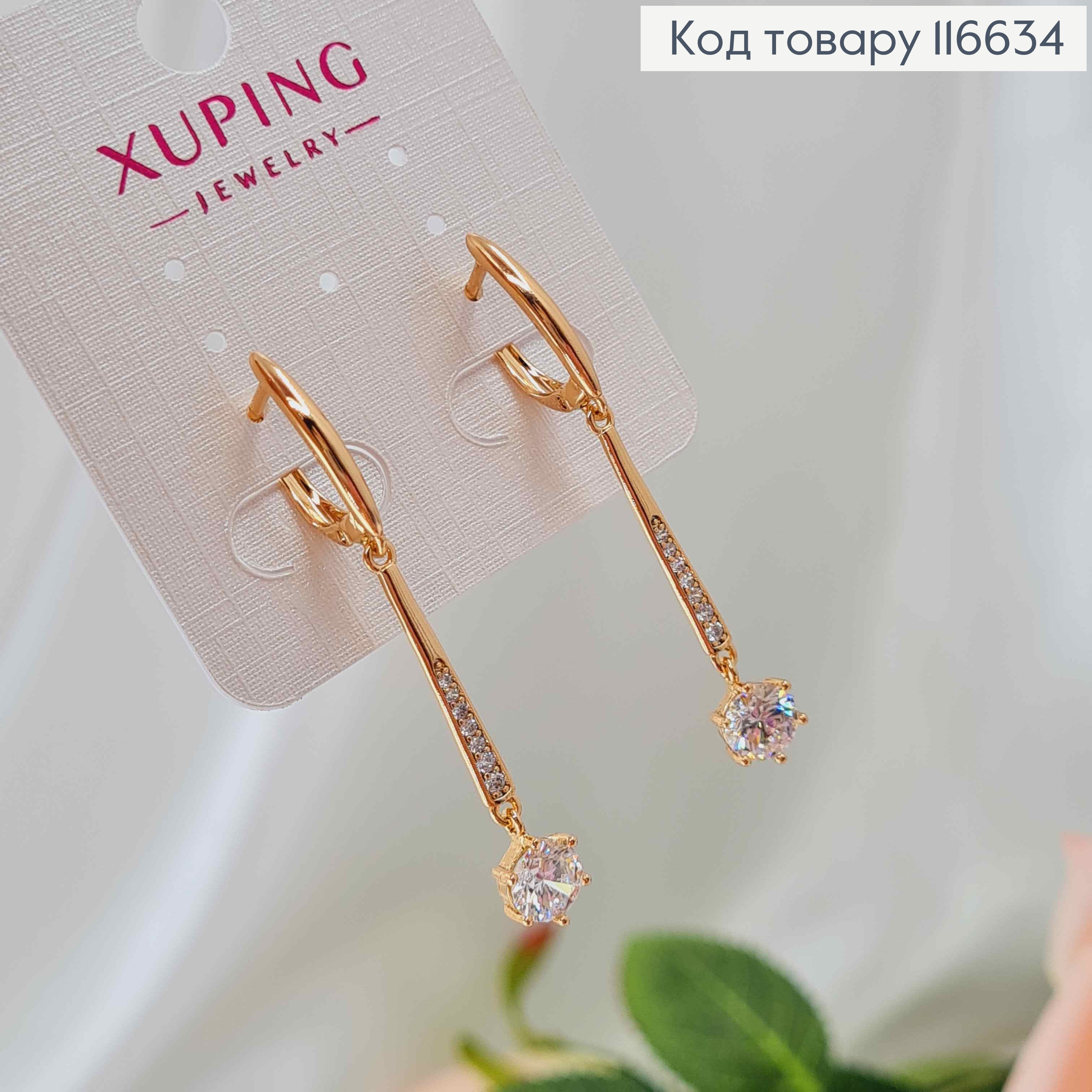 Сережки з підвіскою лінією та круглим камінцем, 3,5см, англ. заст. Xuping 18K