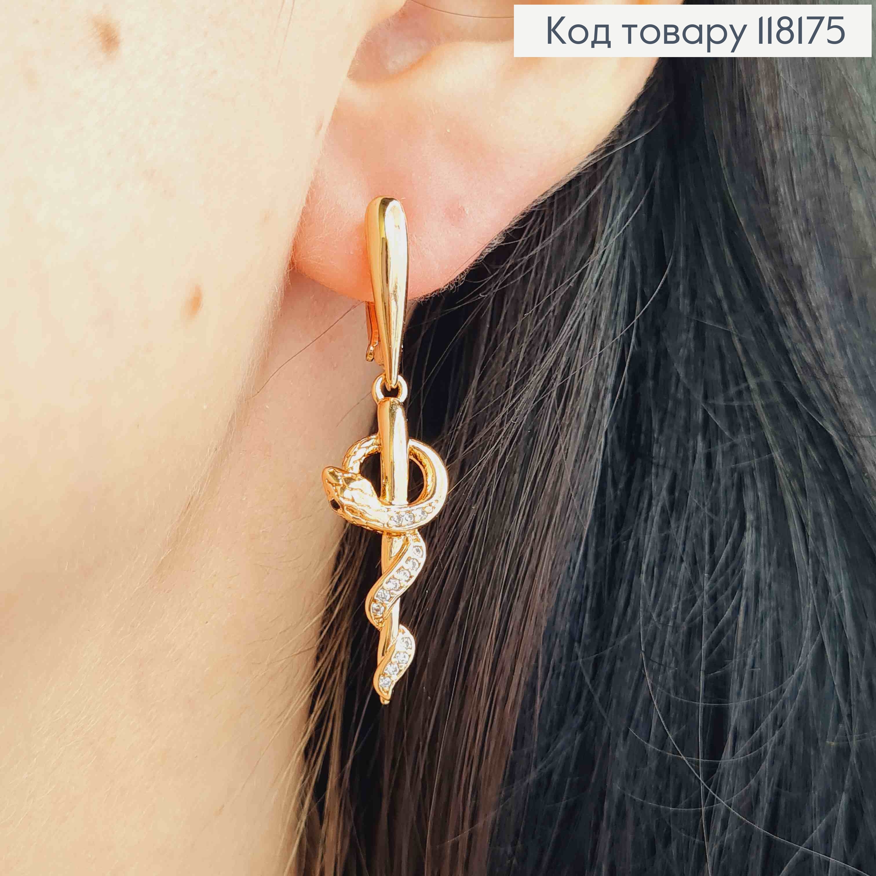 Сережки з рухливою підвіскою "ЗМІЯ" в Блискучих камінцях, 1,5+2,6см, англ. застіб., Xuping 18K
