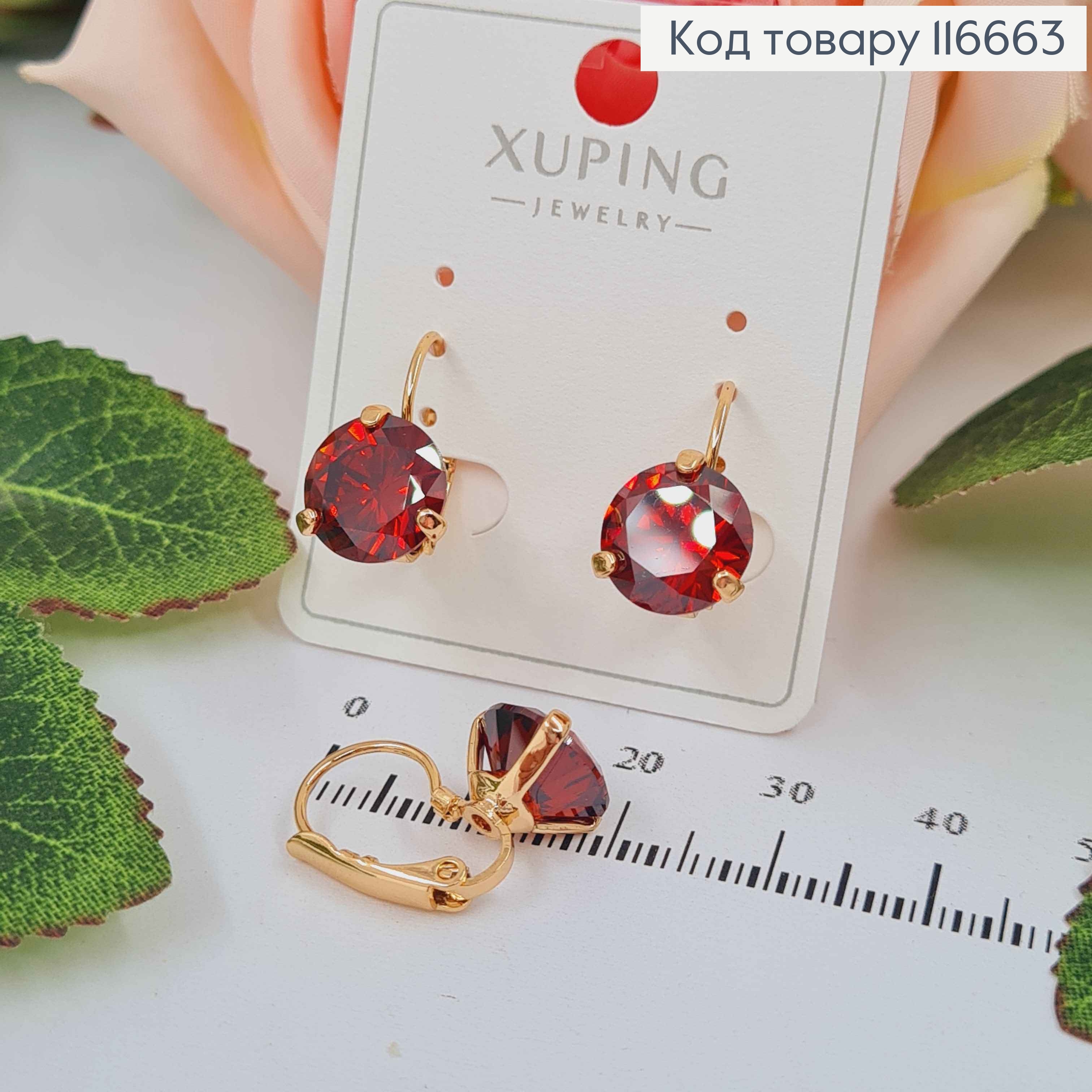 Сережки з великим бордовим камінцем 1см, Франц. заст. Xuping 18K