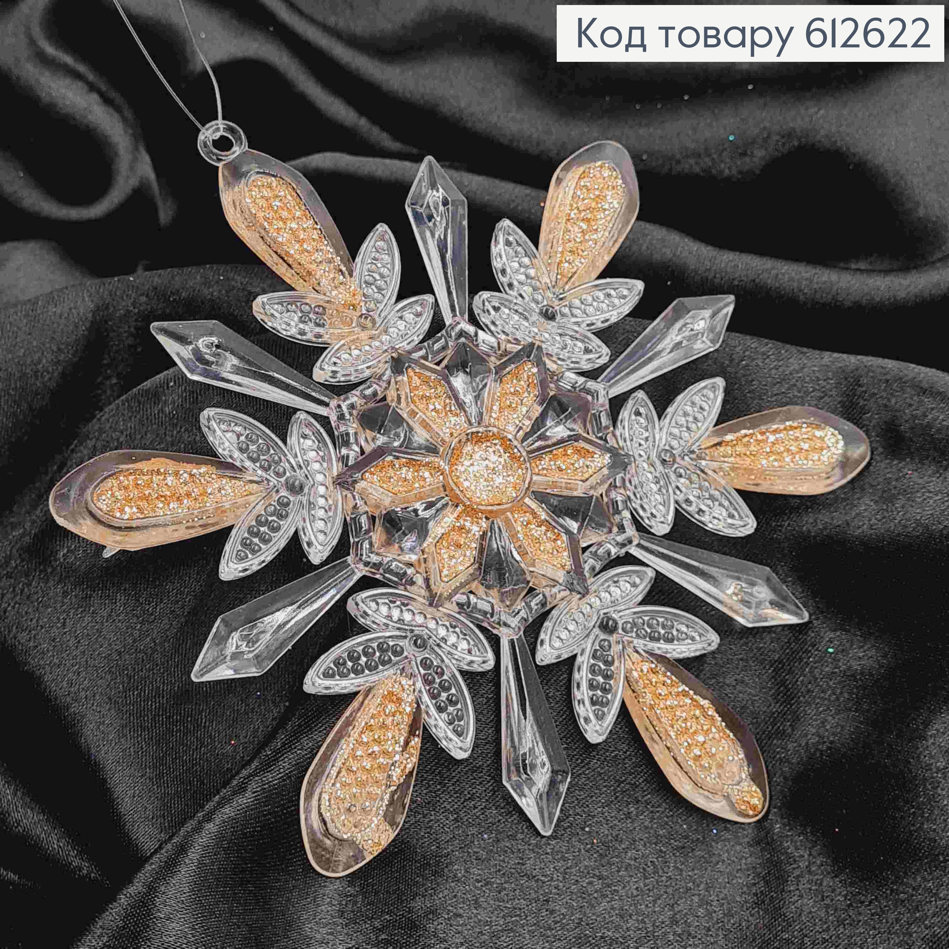 Фігурка Сніжинка ПЕРСИКОВА, матова, декорована блиском, розмір 11см, пластик, Україна 612652 фото