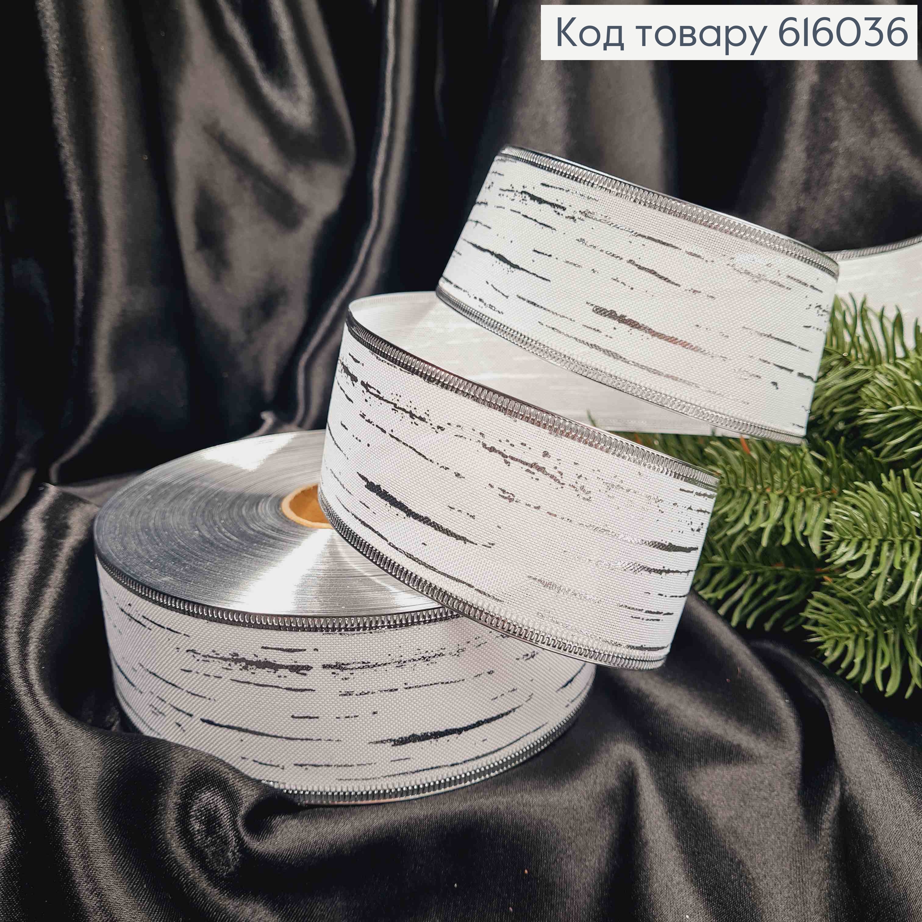 Стрічка-мішковина БІЛА з Срібними смугами, ширина 5см, довжина 50 ярдів (45м)