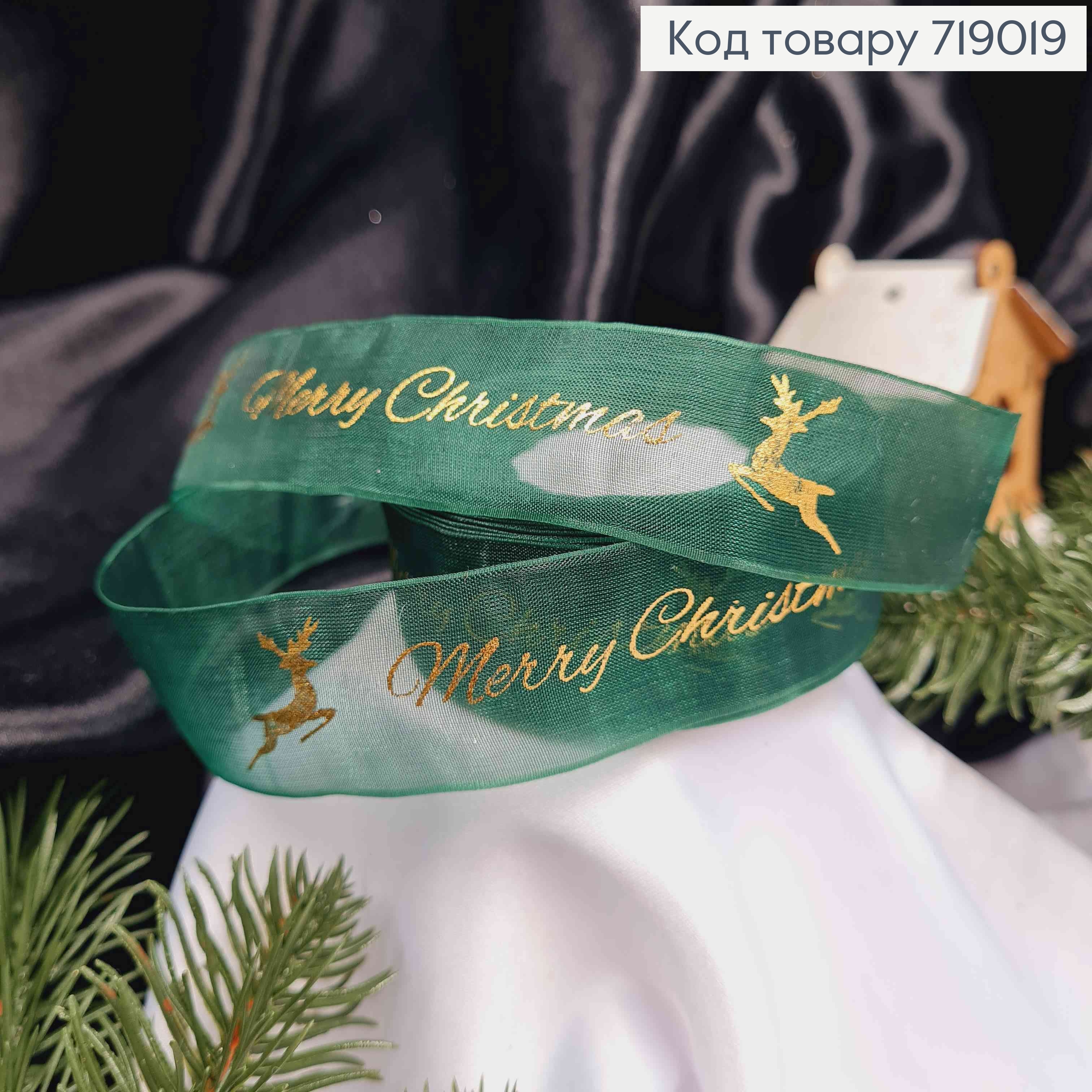 Стрічка репсова ЗЕЛЕНА з НОВОРІЧНИМ принтом, ширина 2,5см, довжина 25 ярдів (23м) 719023 фото