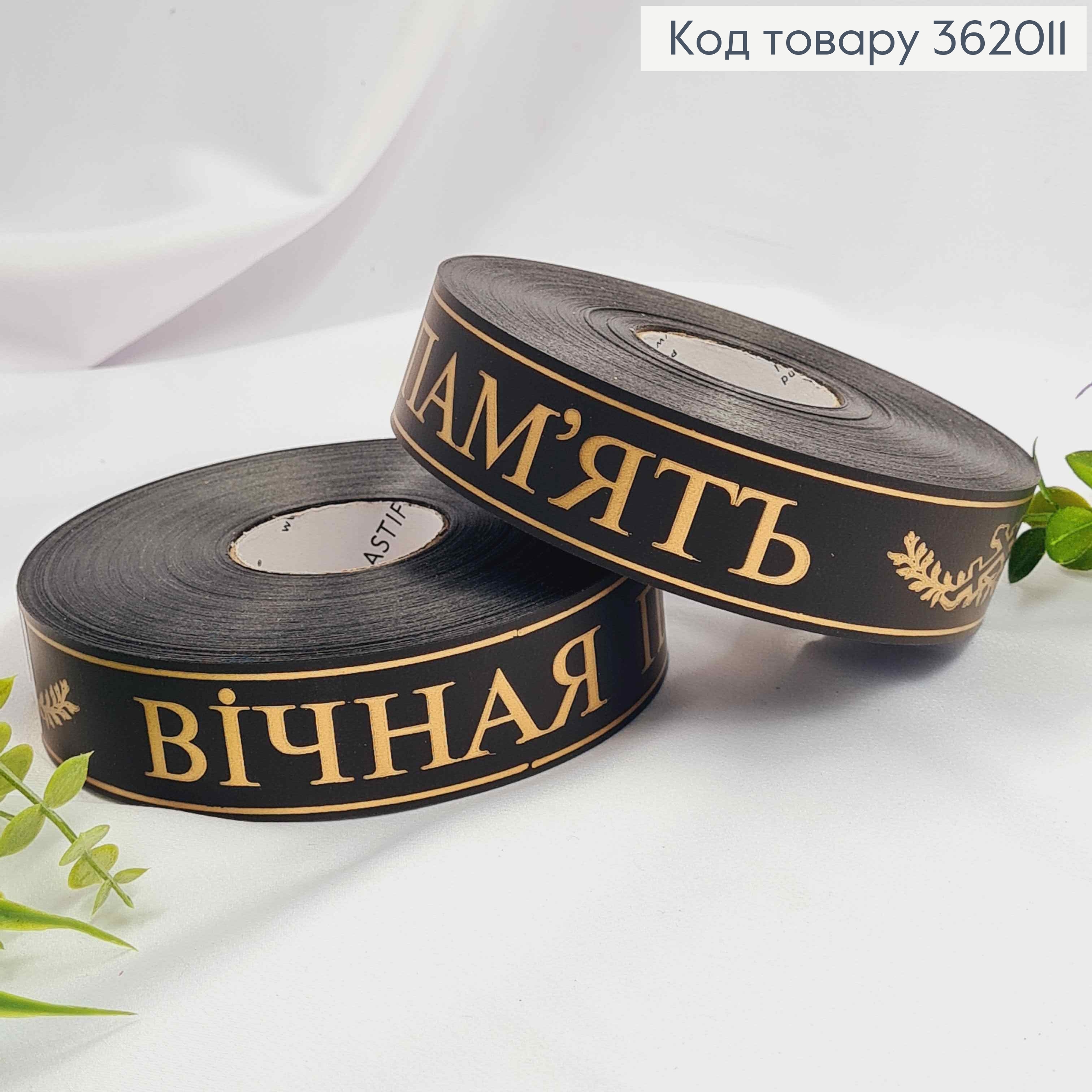 Стрічка поліпропіленова, "Вічна пам'ять" Чорна+Золото, шир. 3см, довж. 100м