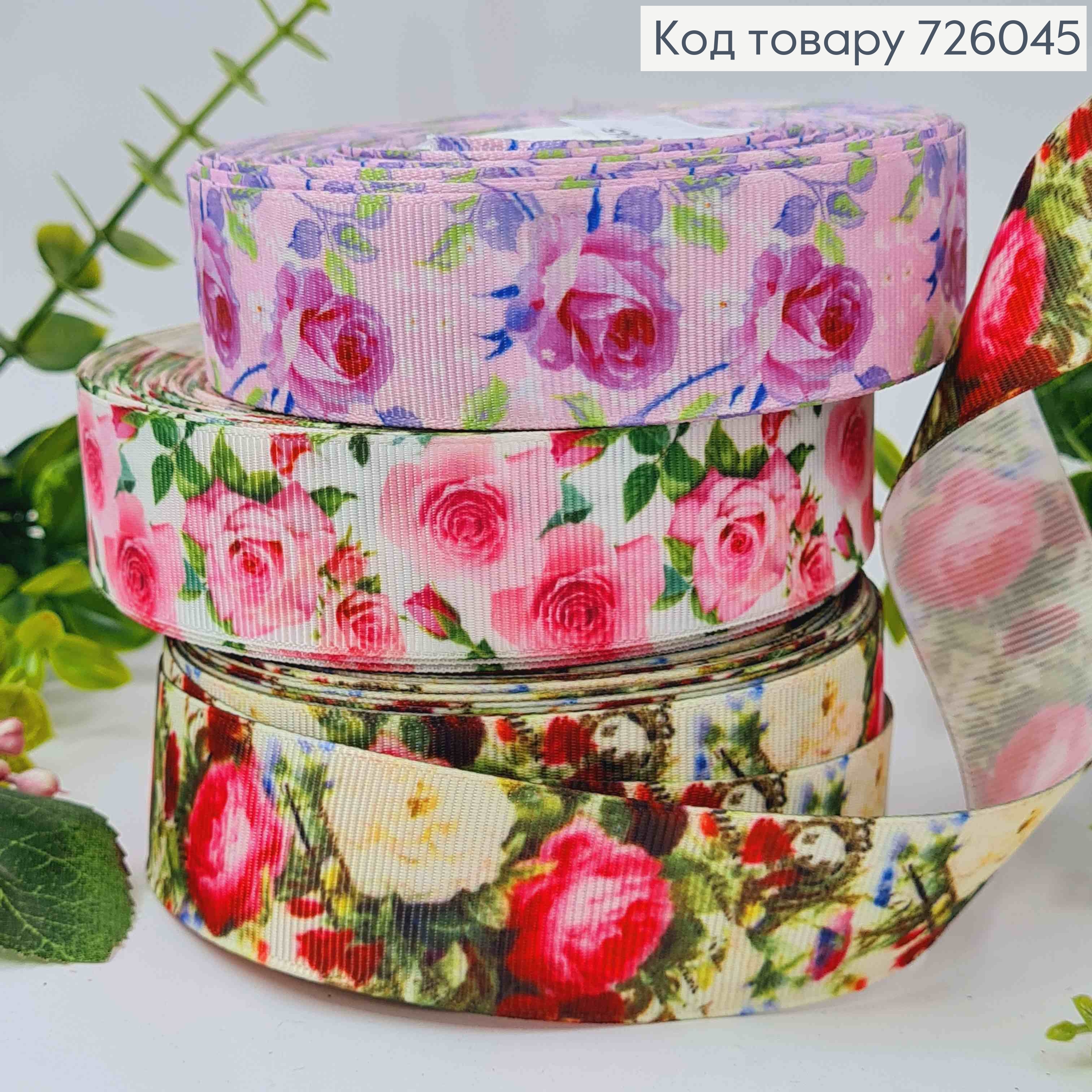 Стрічка репсова, з принтом "Весняні Квіти" (в асорт.), ширина 2,5см, довжина 25 ярдів(23м)