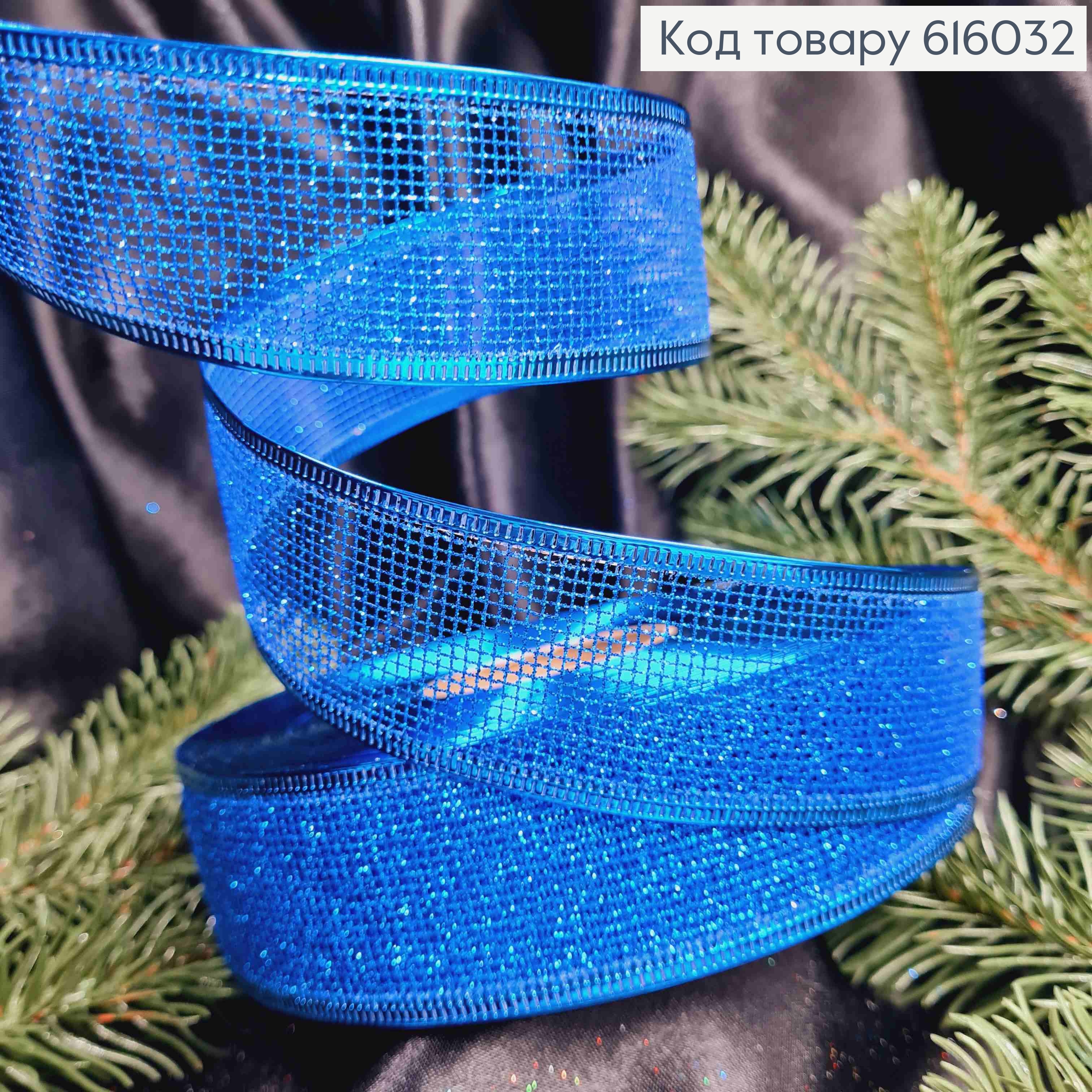 Стрічка-сітка Блиск СИНЯ, ширина 3,5см, довжина 50 ярдів (45м)