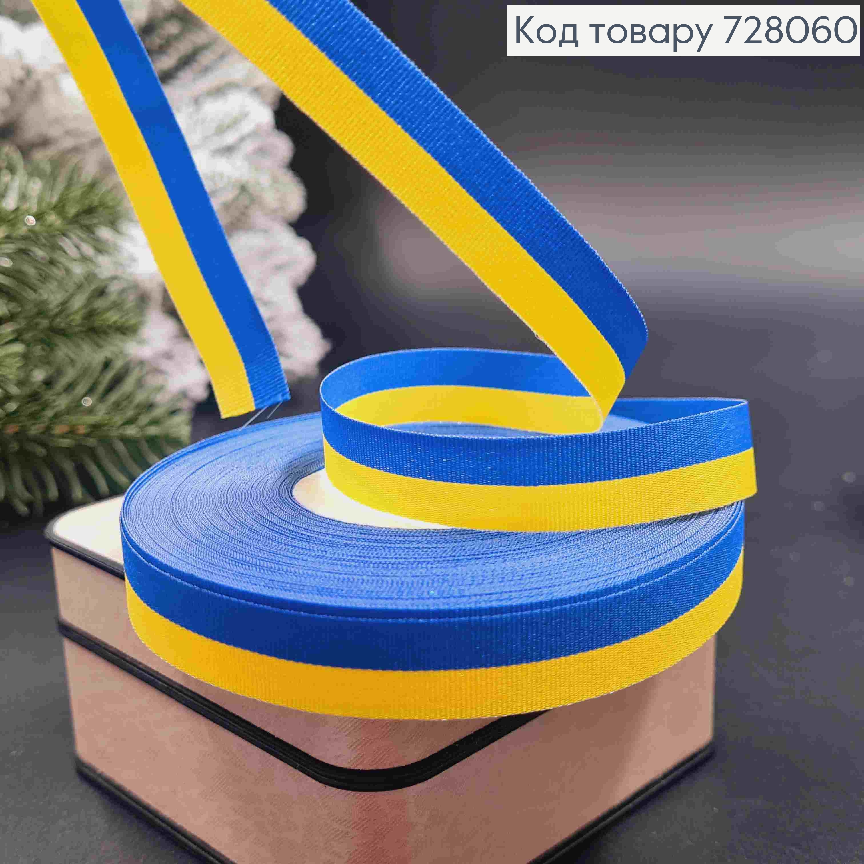 Стрічка тканинна, ЖОВТО-СИНЬОГО кольору,  ширина 2,5см, довжина 25 ярдів (23м) 728058 фото