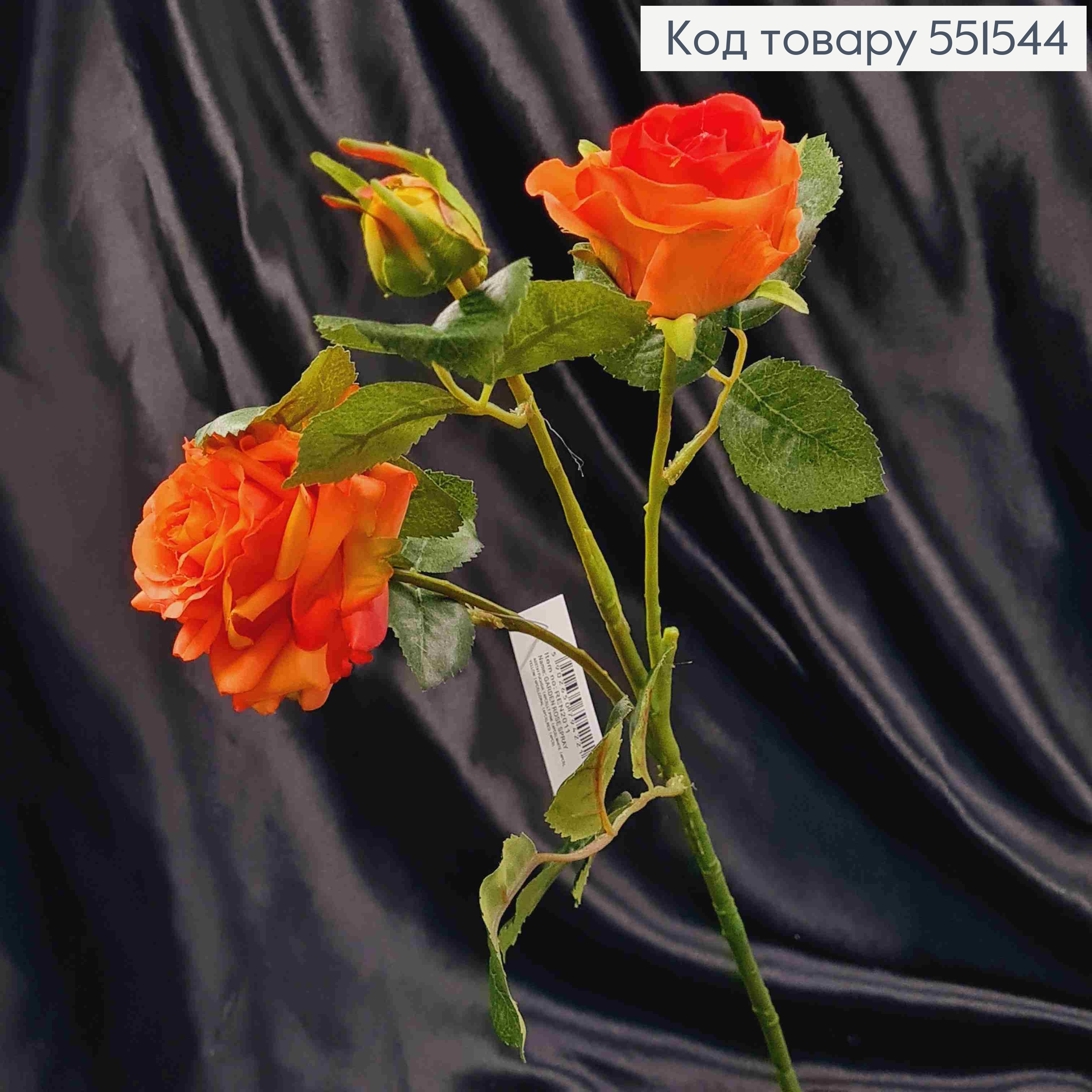 Штучна гілочка Троянди, ЧЕРВОНО-ПОМАРАНЧЕВА, 2квітки, 2бутони на метал. стержні, висота 51см