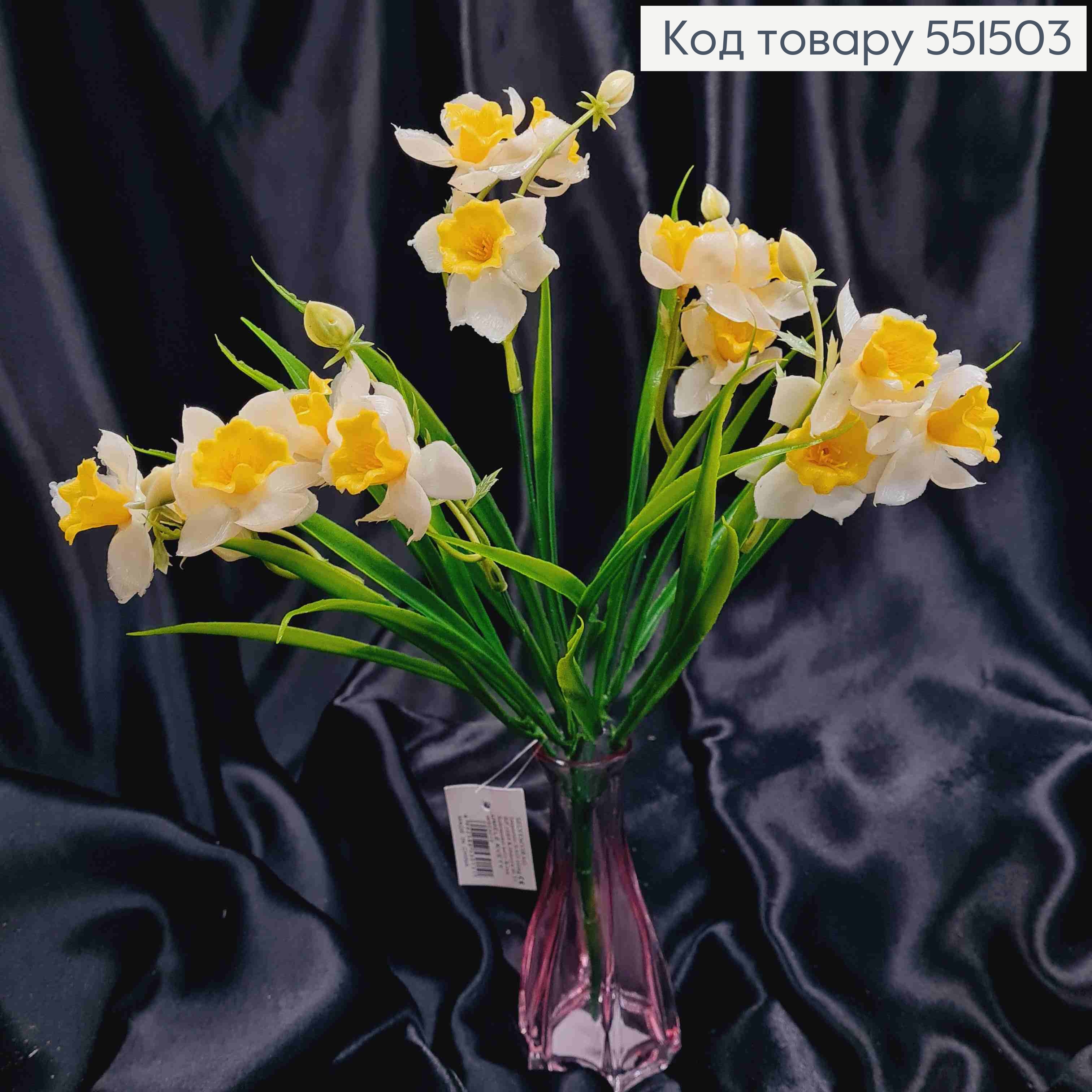 Штучна композиція "НАРЦИСИ", Жовто-Білого кольору (латексні), 5гілочок, висота 35см