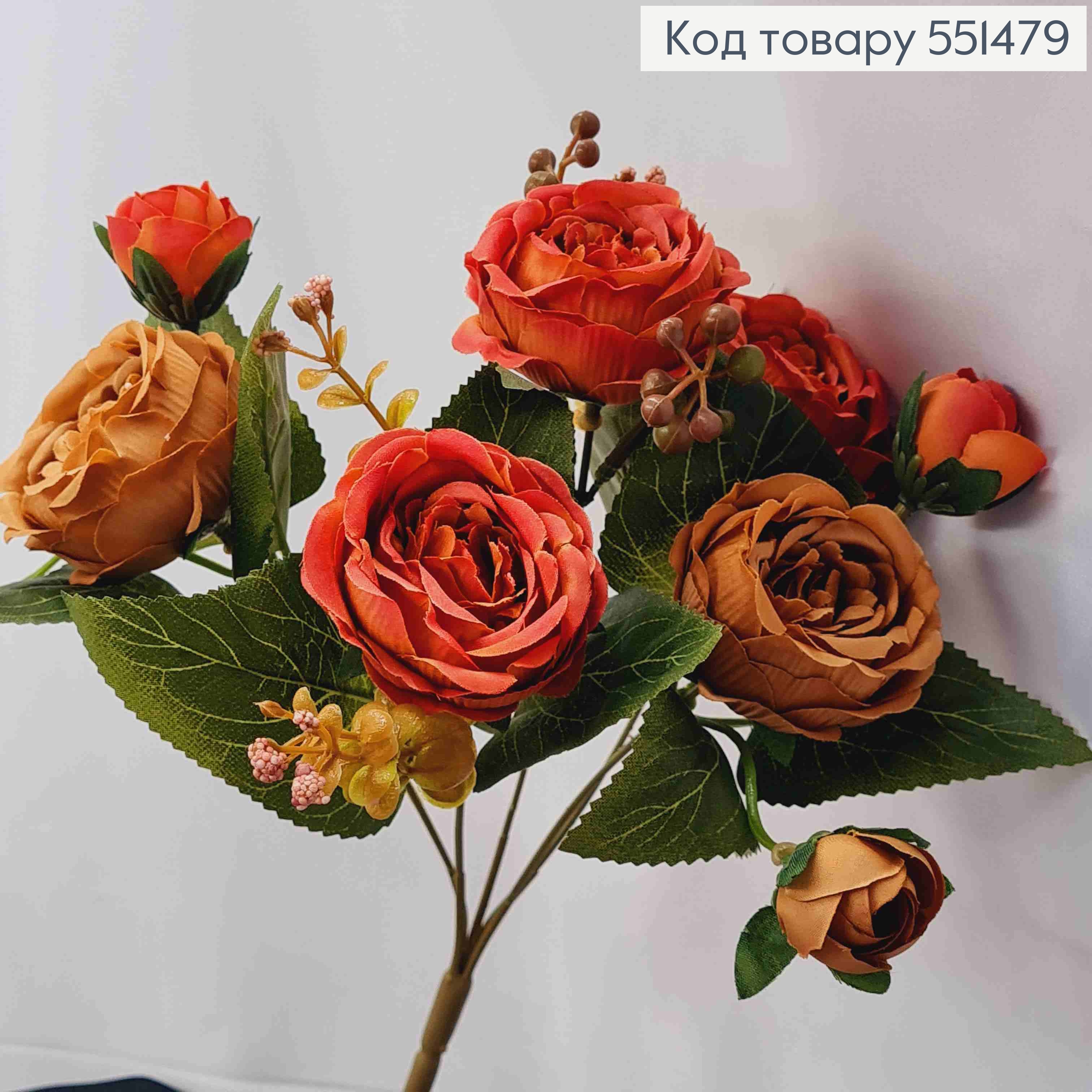 Штучна композиція Троянди, ПЕРСИКОВОГО кольору, 7 гілочок на металевому стержні, висота30см 551562 фото