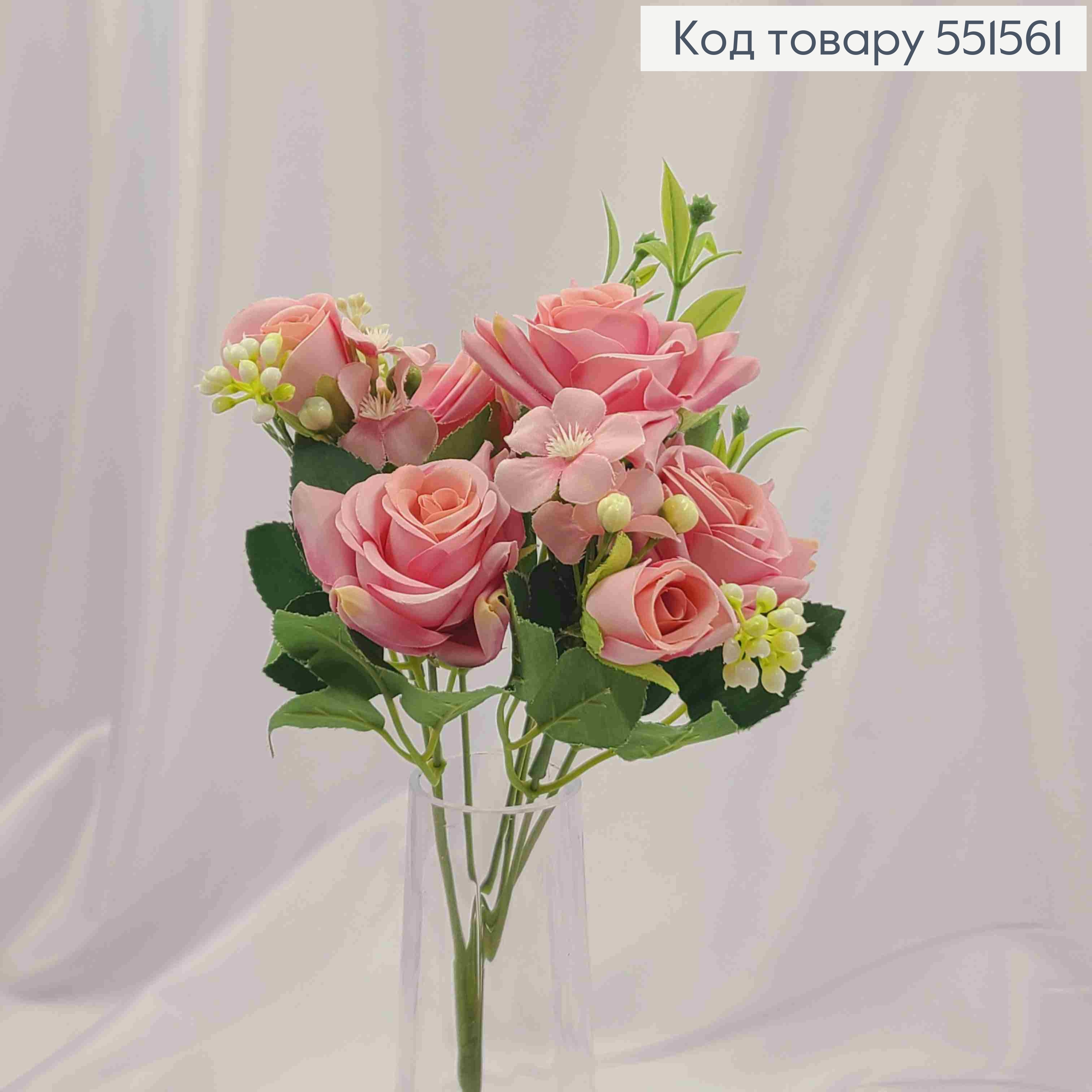 Штучна композиція Троянди, ПЕРСИКОВОГО кольору, 7 гілочок на металевому стержні, висота30см 551562 фото