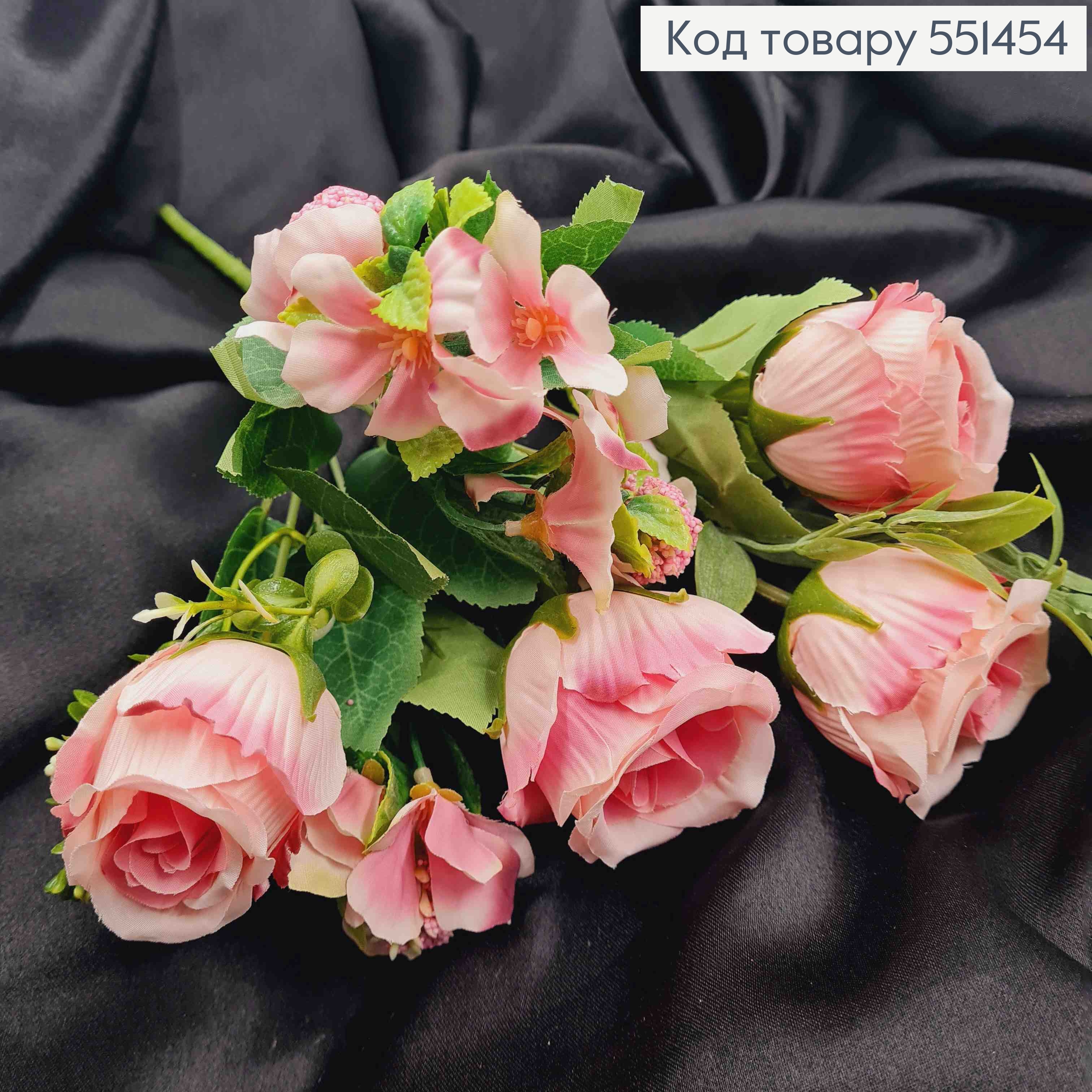 Штучна композиція Троянди, ПЕРСИКОВОГО кольору, 7 гілочок на металевому стержні, висота30см 551562 фото