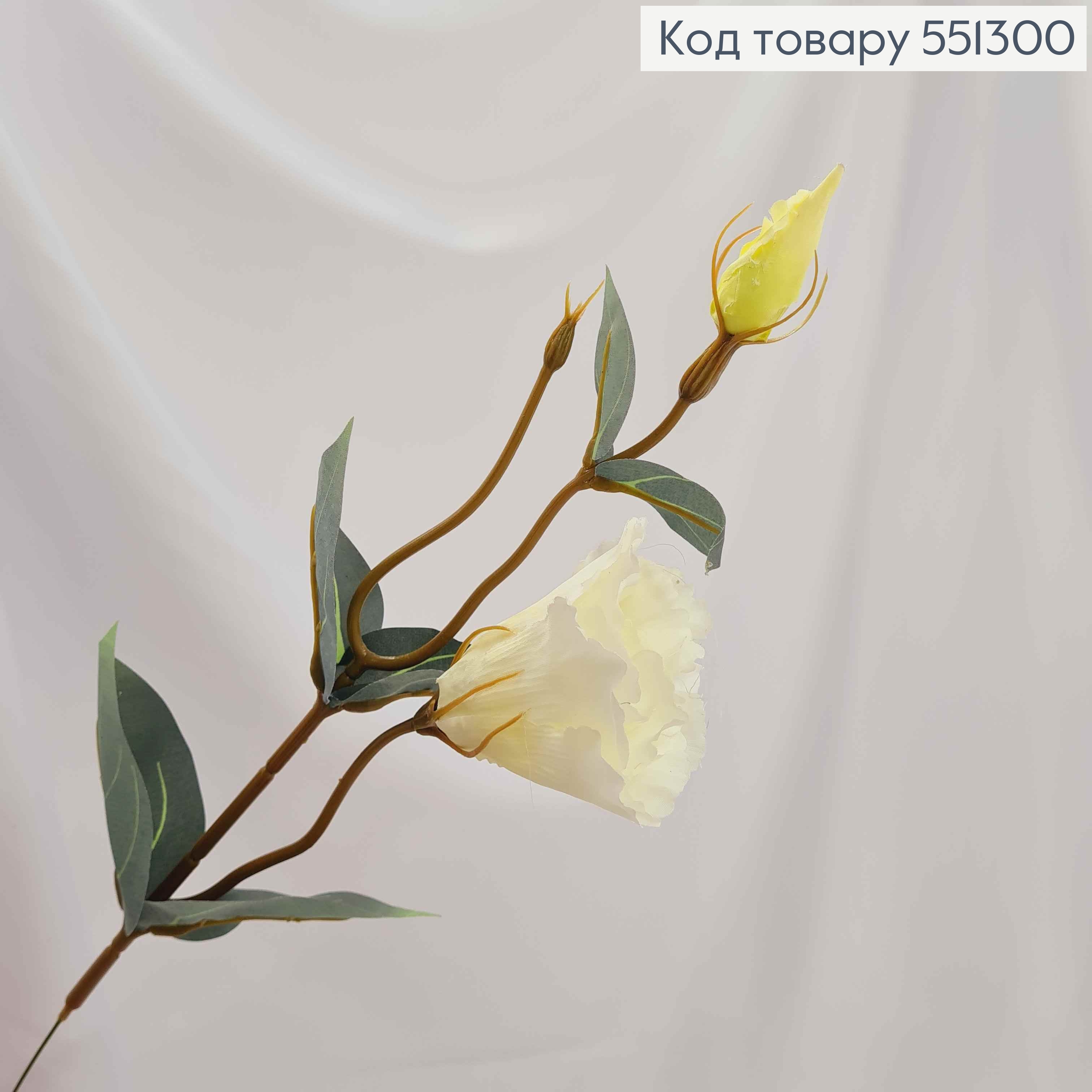 Штучна квітка, гілочка Еустоми , МОЛОЧНОГО, 1 квітка + 1 бутон, на металевому стержні, 47см