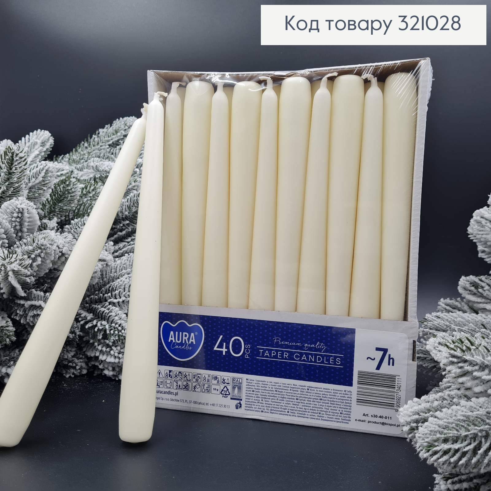Свічка довга конусна МОЛОЧНА, довжина 25см, горіння 7год., AURA, Bispol (якісна, не тече)