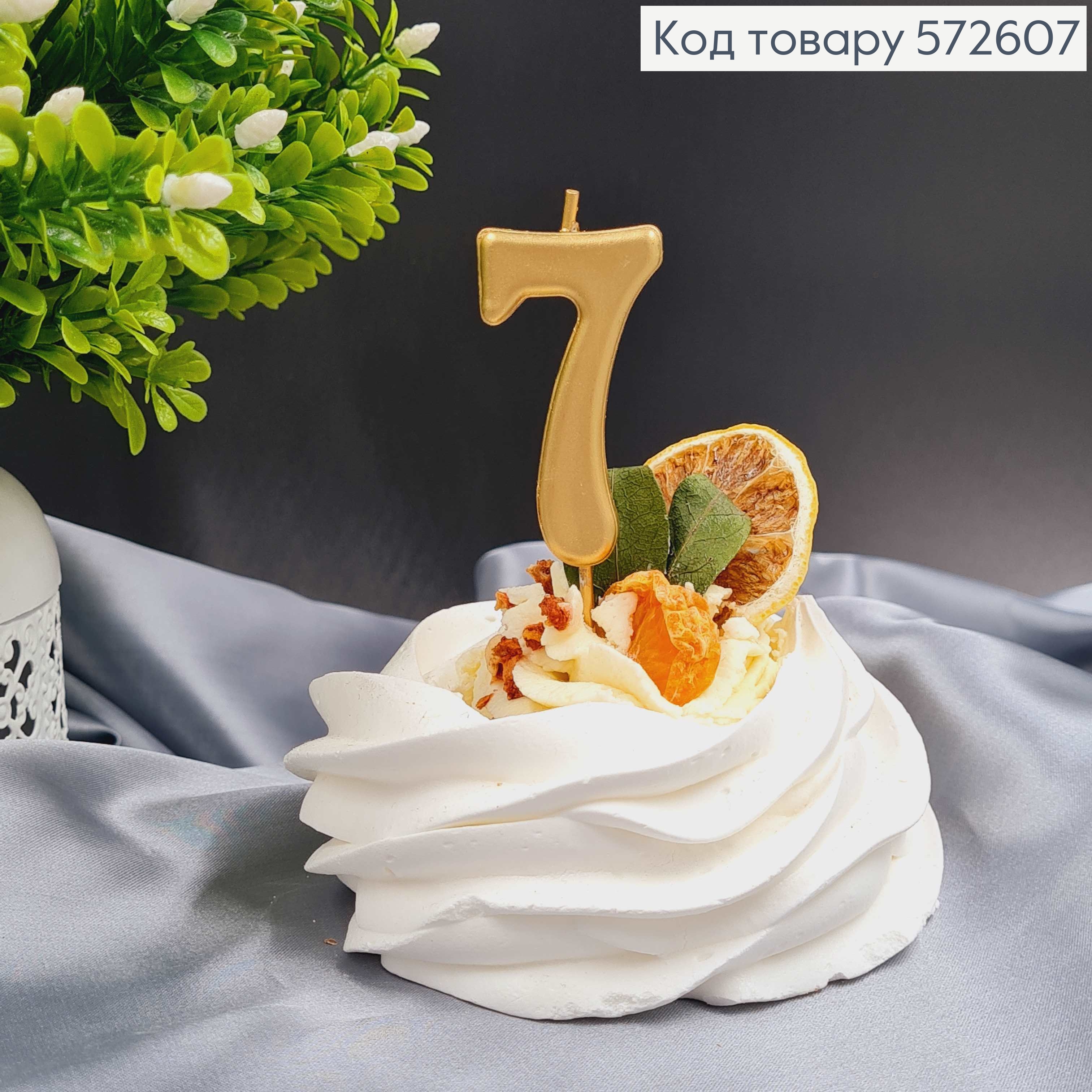 Свічка в торт цифра "7", Хромована Золото, 5,5+4см, Україна