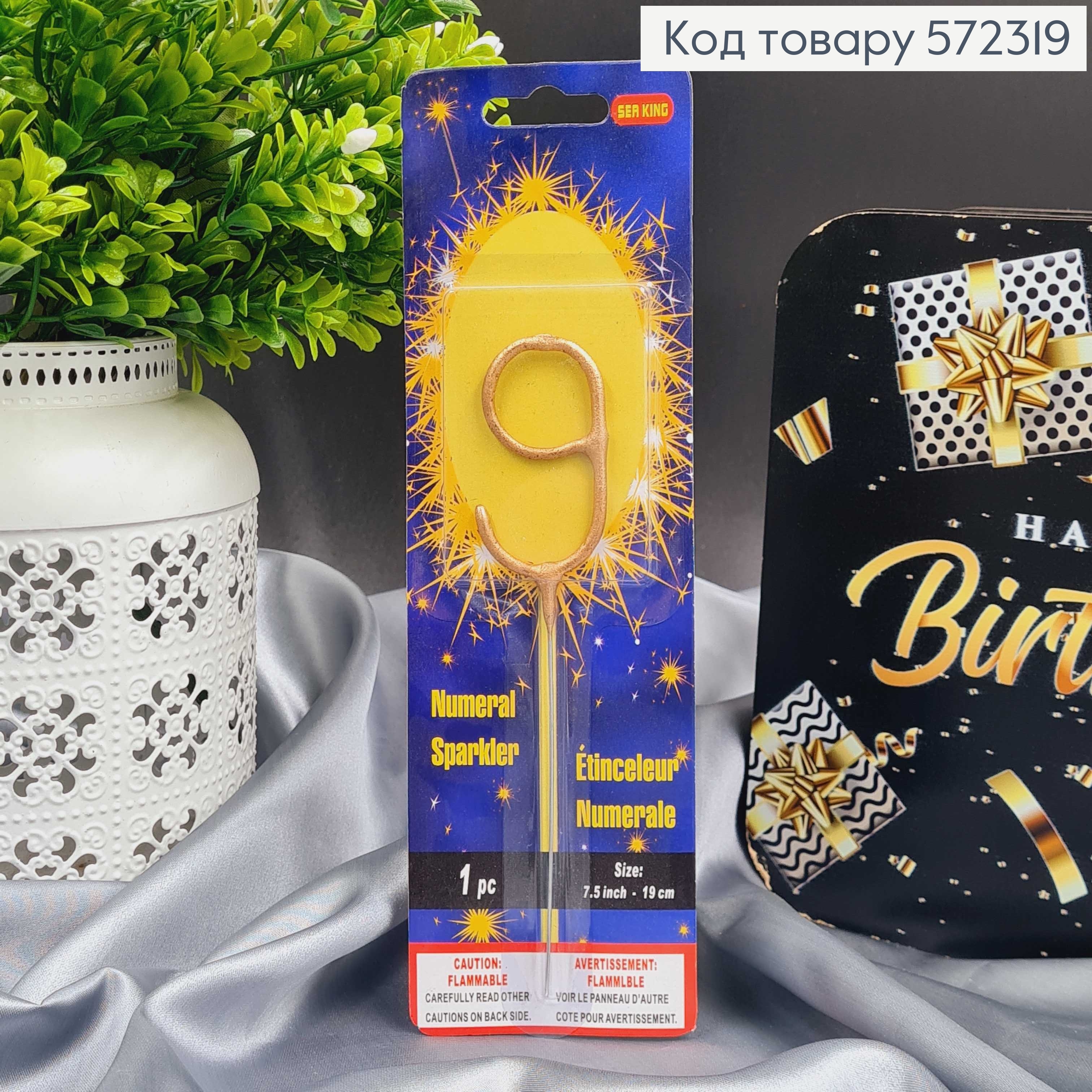 Свічка в торт цифра "9", Золото Бенгальський вогонь, 6,5+10см