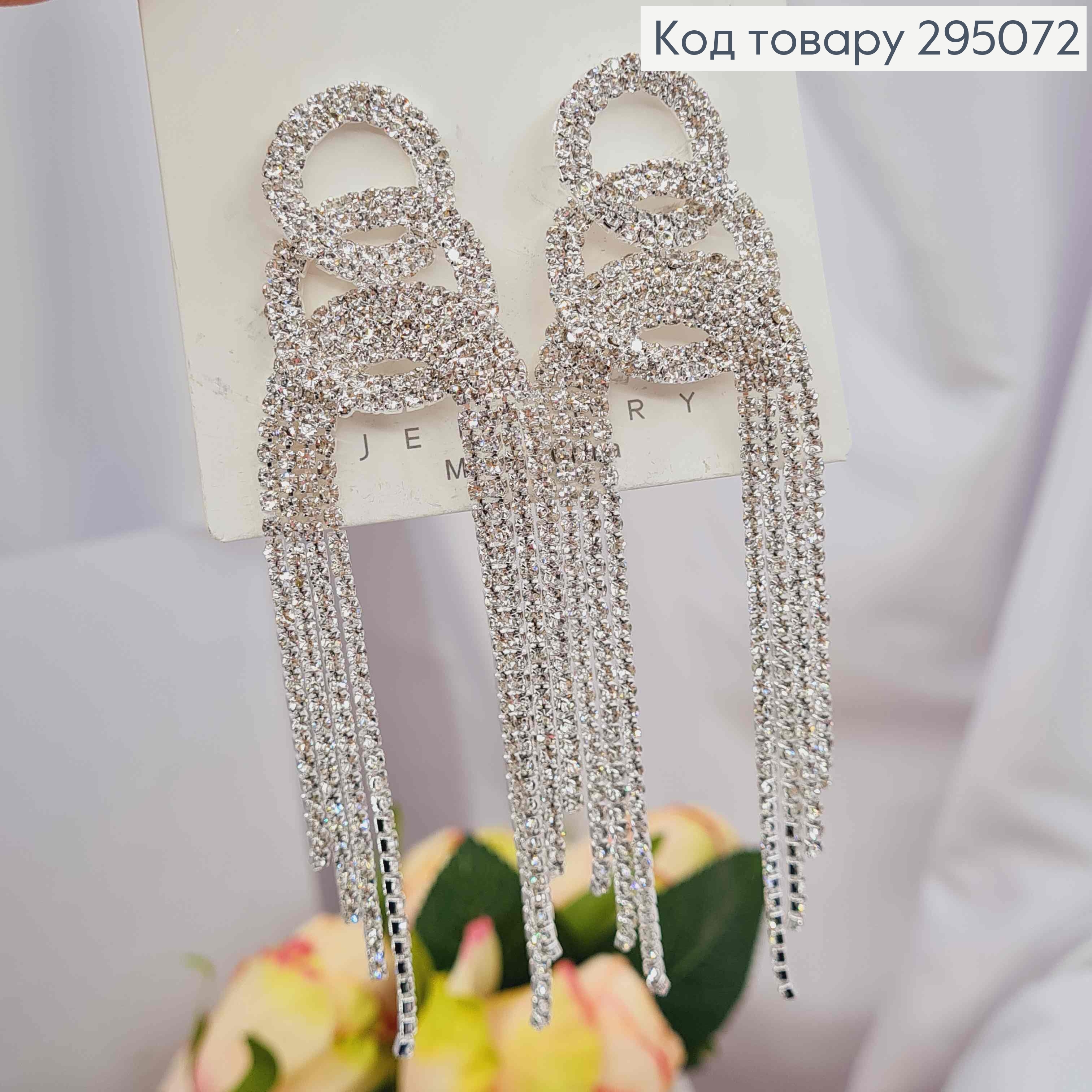 Вечірні-Весільні сережки гвоздики, з ланцюжками з камінців, 8,5см, Срібного кольору 295025 фото