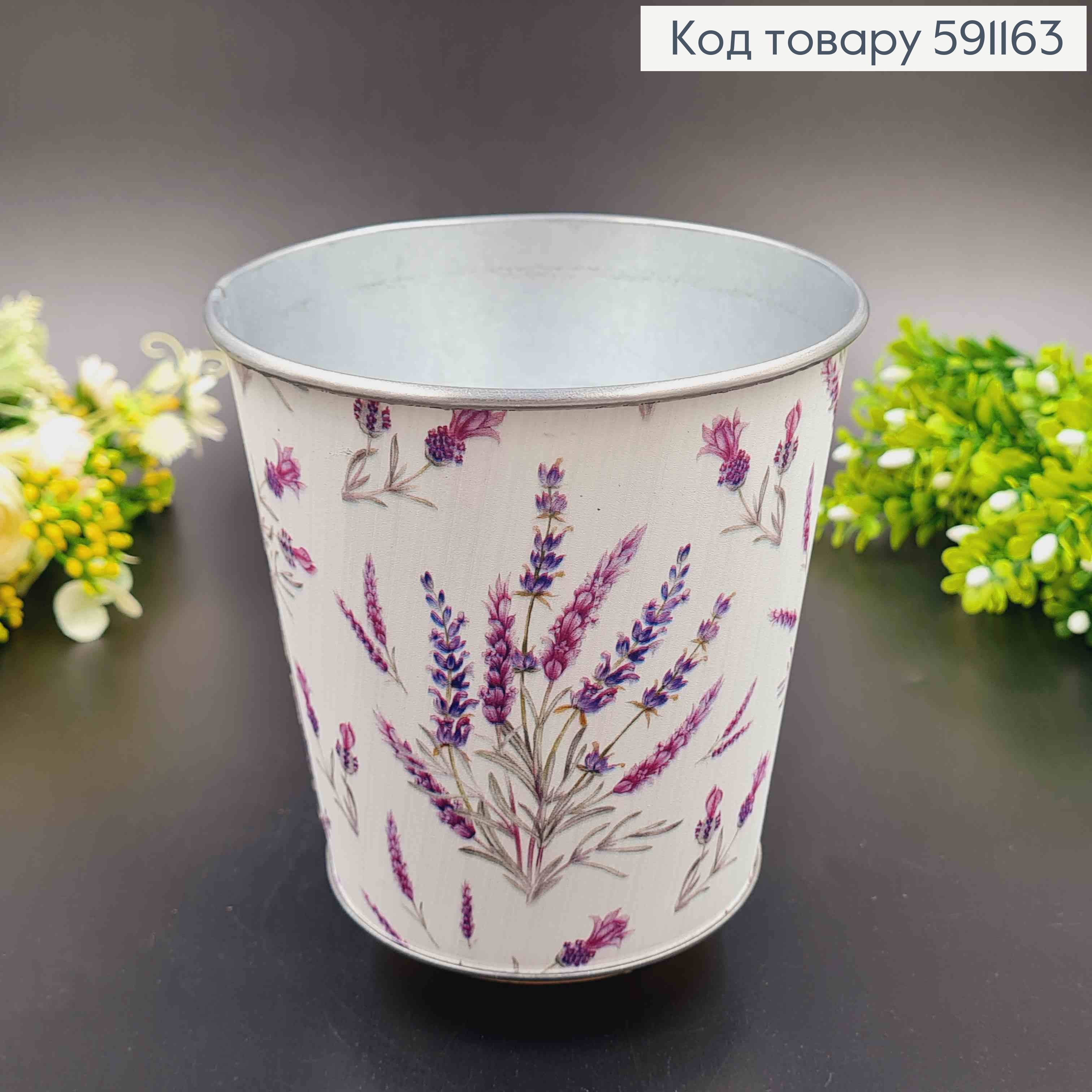 Відерце-кашпо, метал, білого кольору з лавандою, висота 12 см, Польща