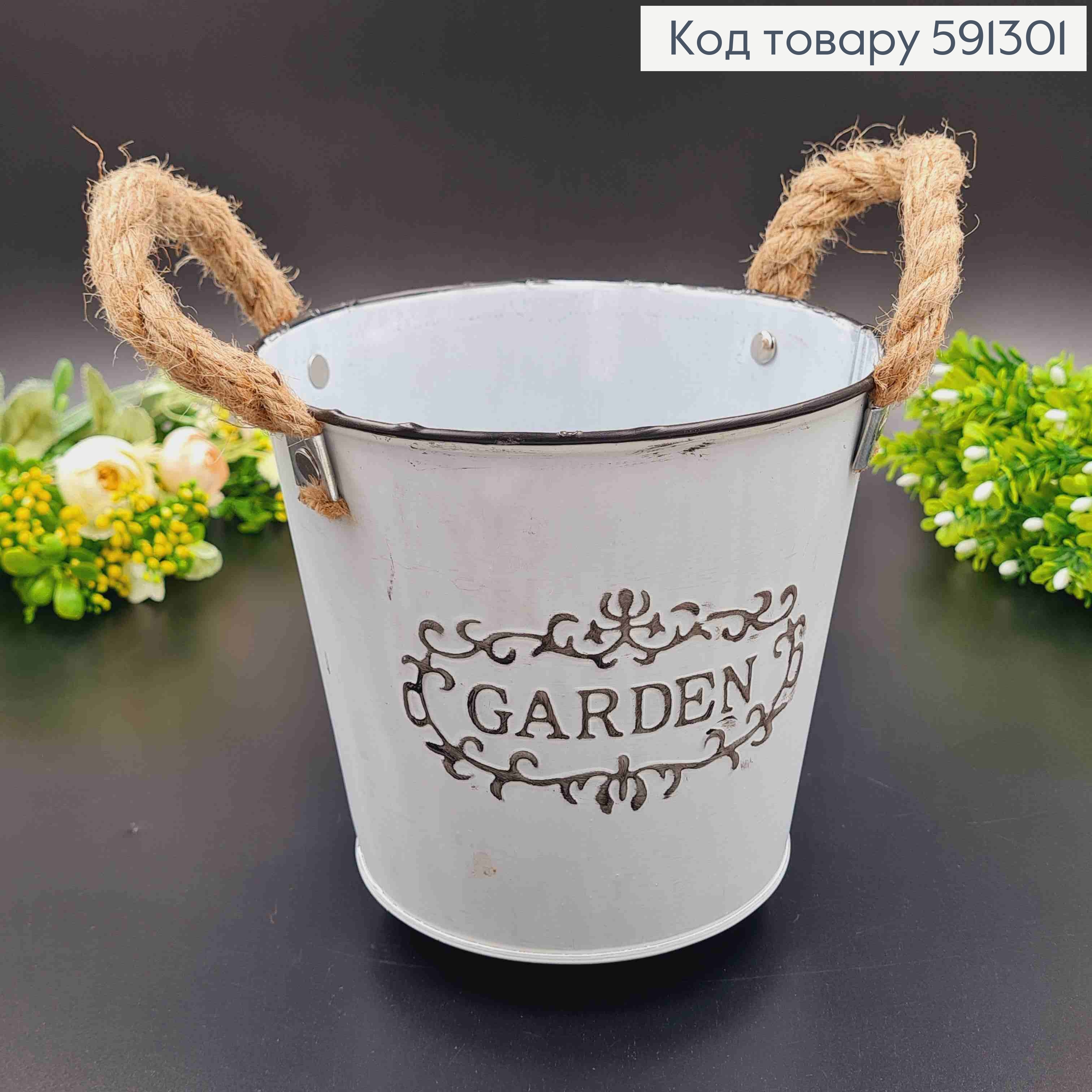 Відерце-кашпо, метал, білого кольору, з написом "Garden" , висота 14см, Польща