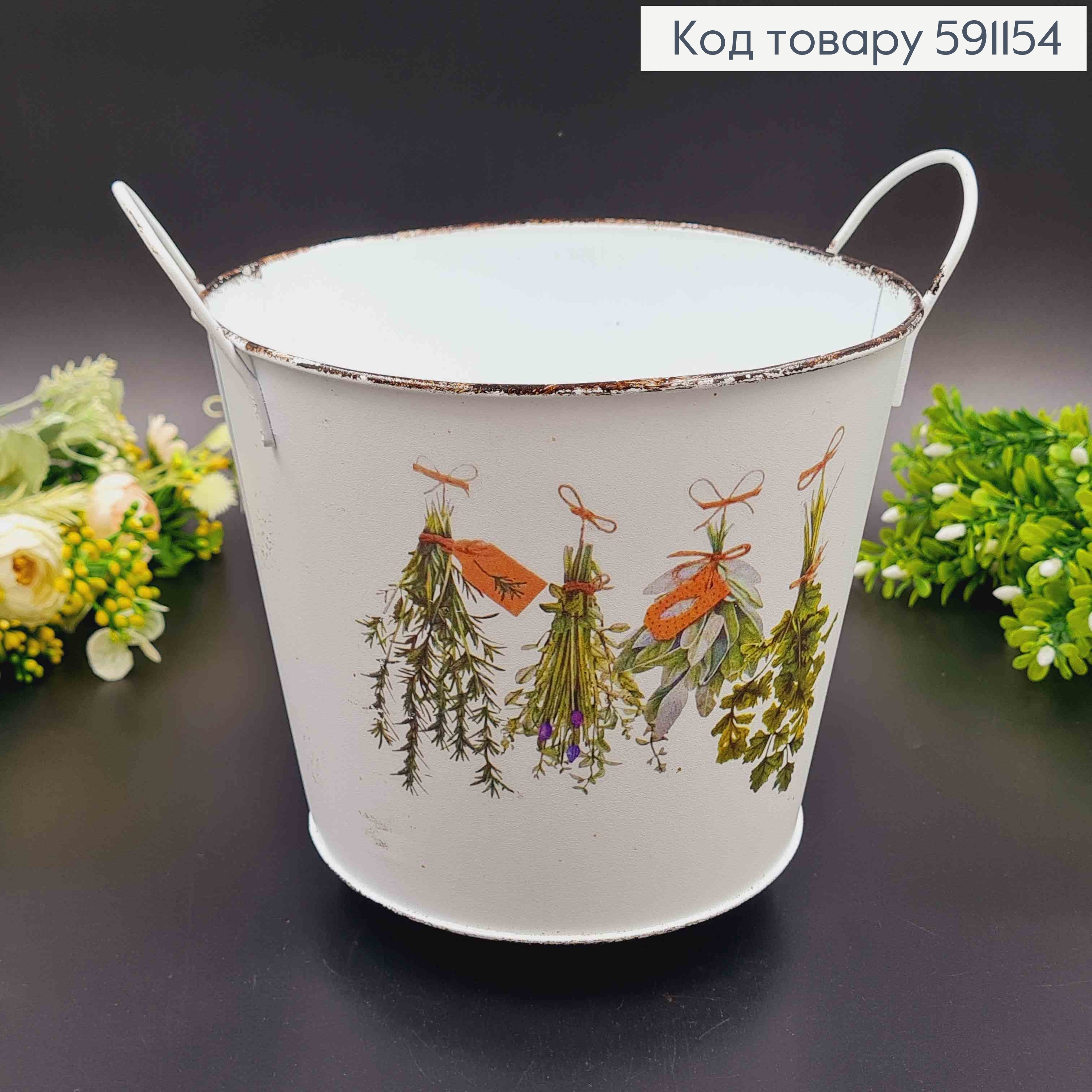 Відерце-кашпо, метал, білого кольору з травами, висота 14см, Польща