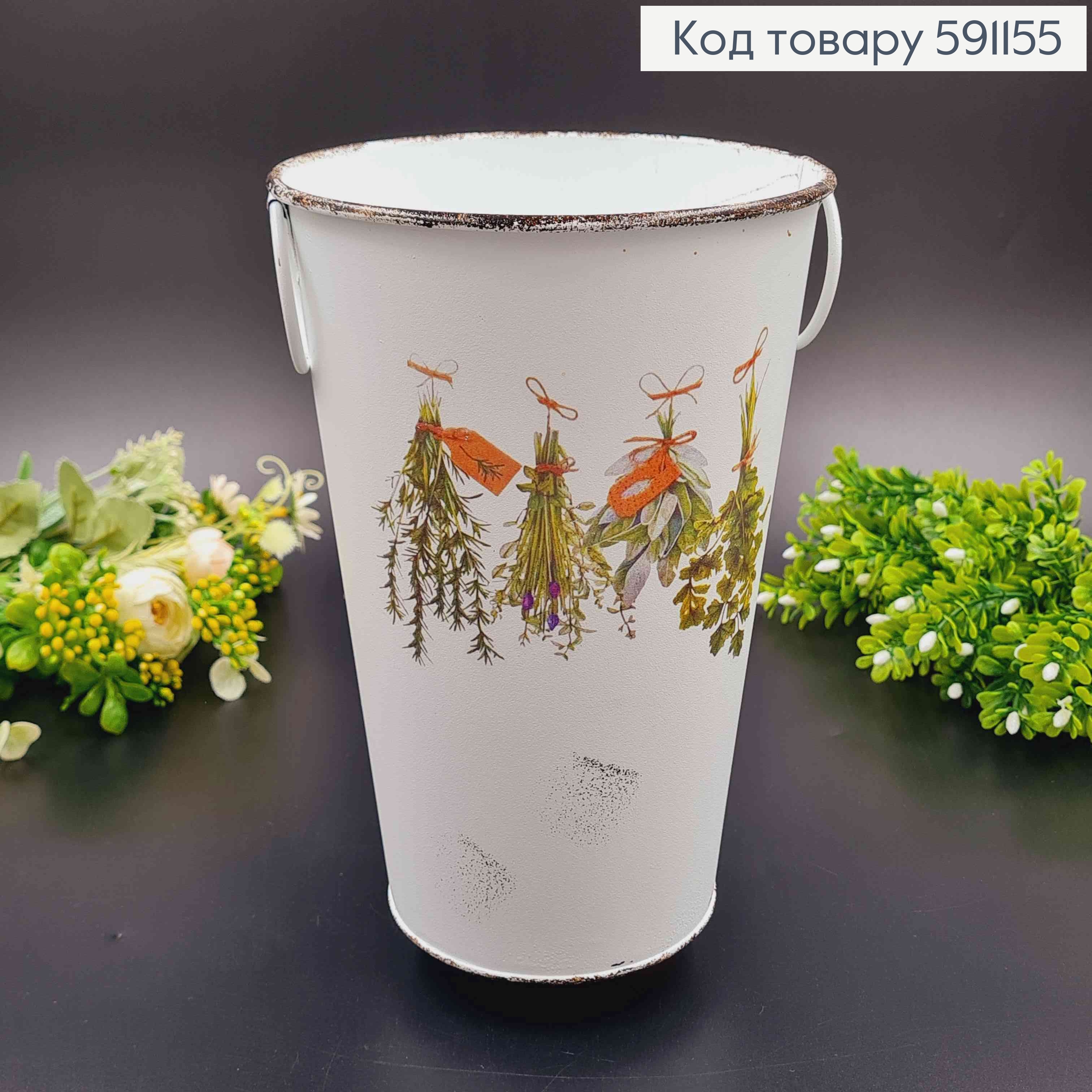 Відерце-кашпо, метал, білого кольору з травами, висота 22см, Польща