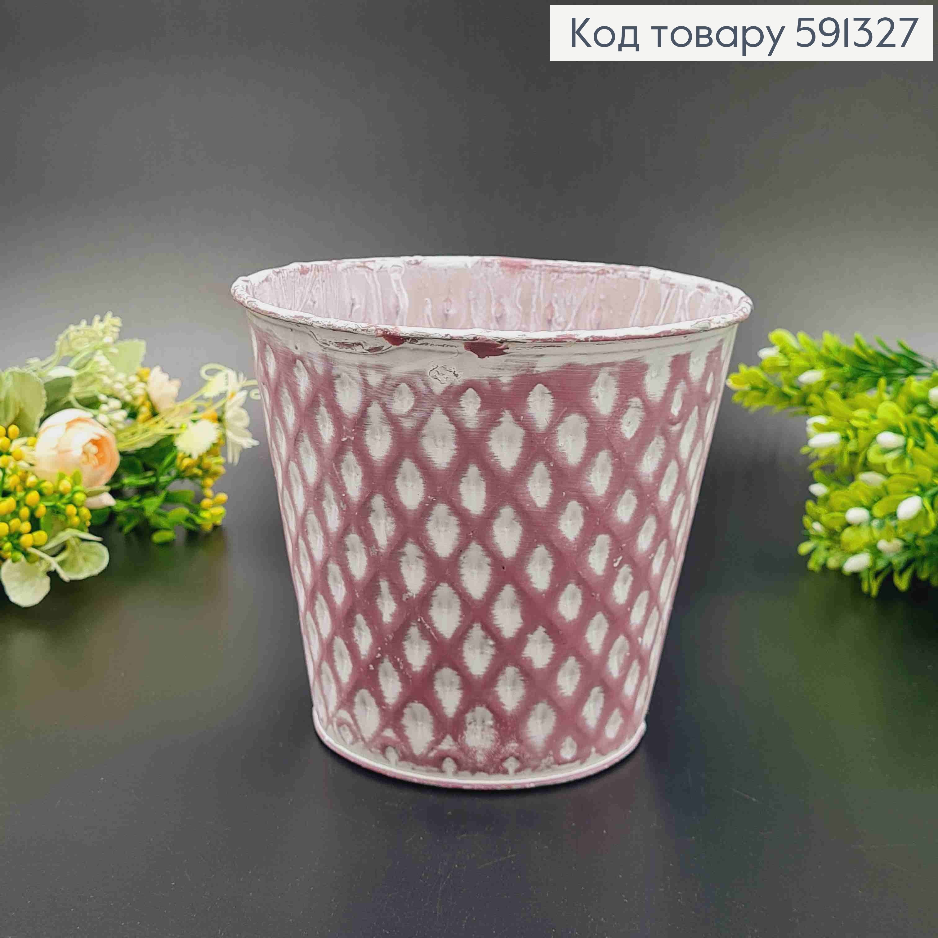 Відерце-кашпо, метал, фіолетового кольору, з об'ємним візерунком, висота 9см, Польща