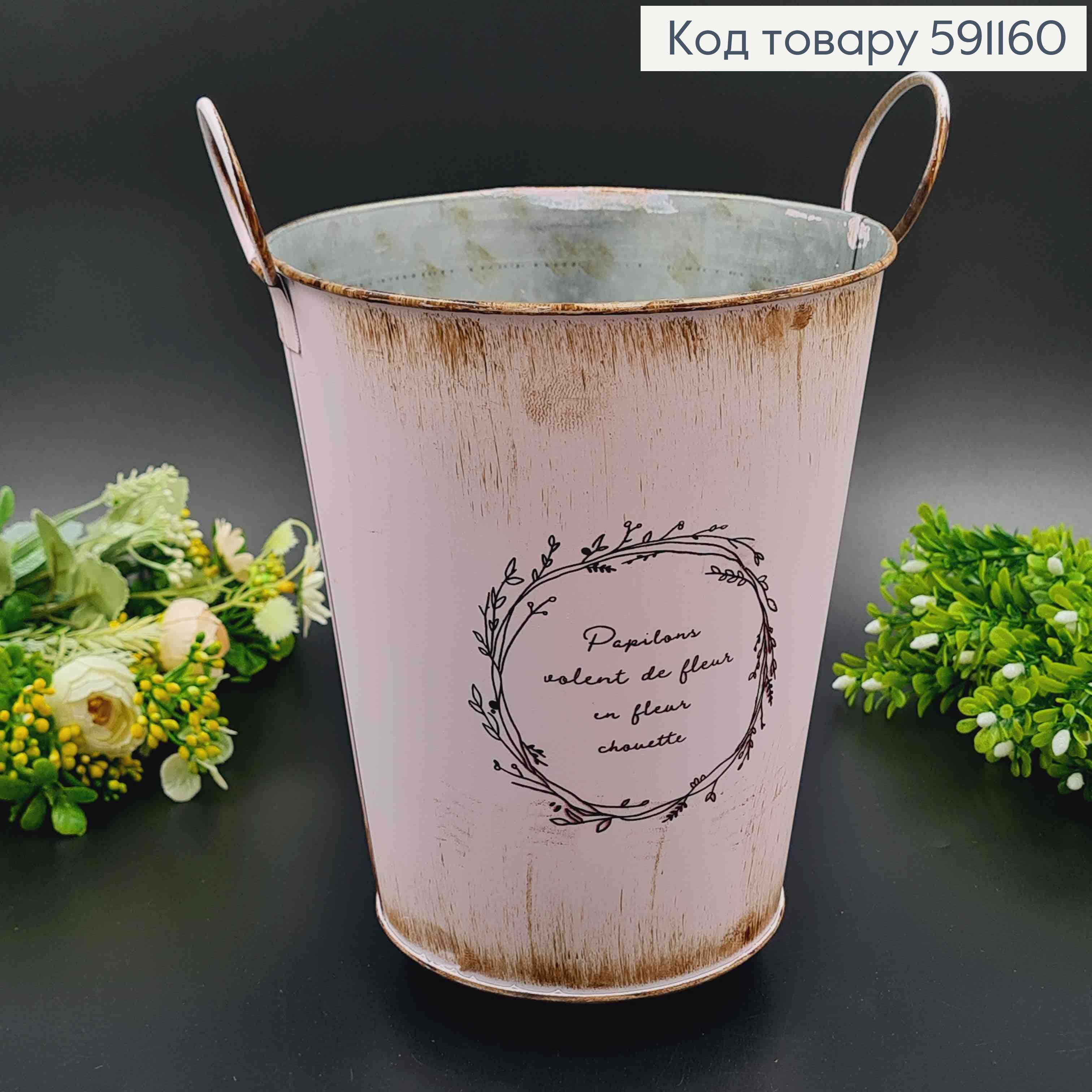 Відерце-кашпо, метал, рожевого кольору з імітацією потертості, висота 19,5см, Польща